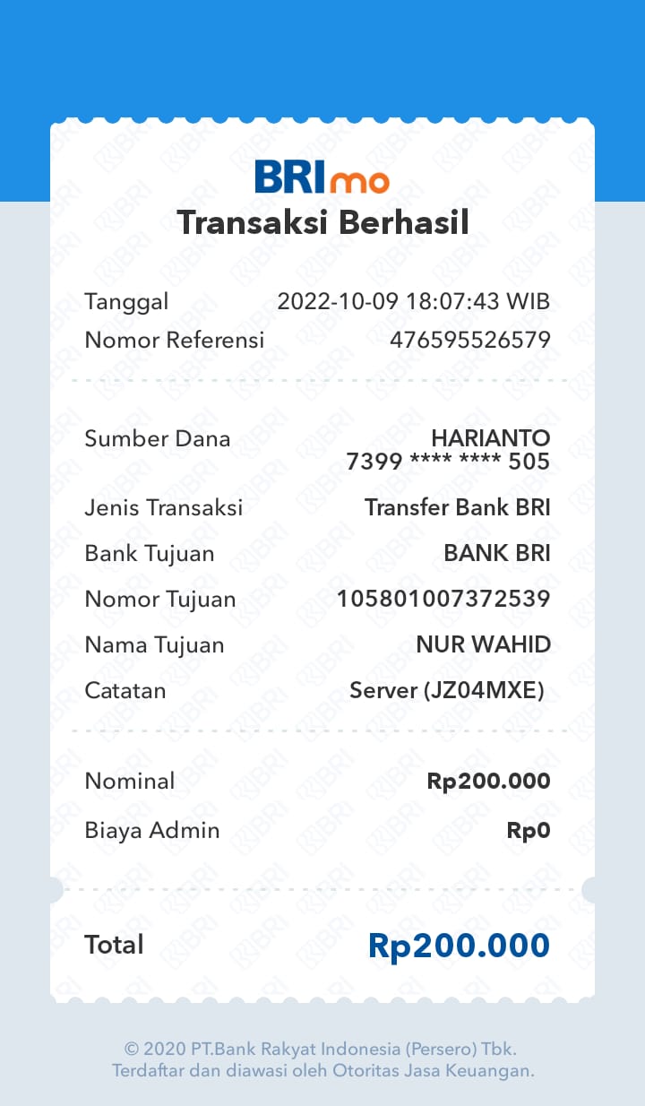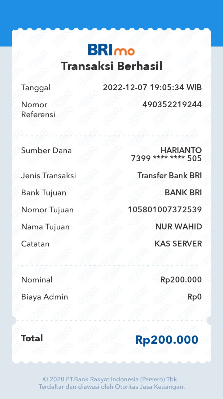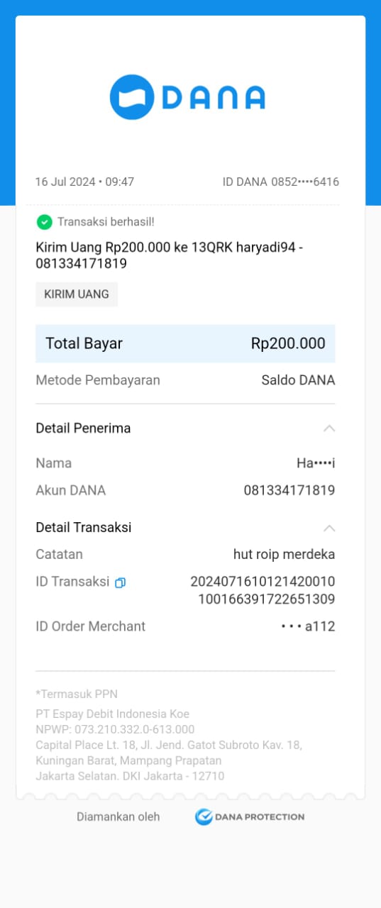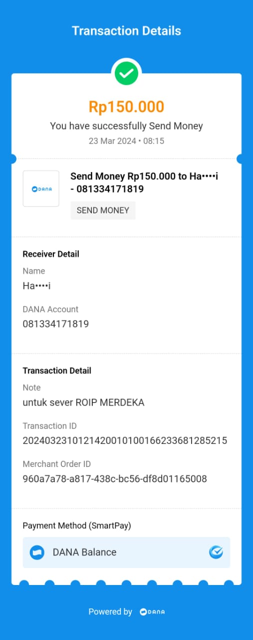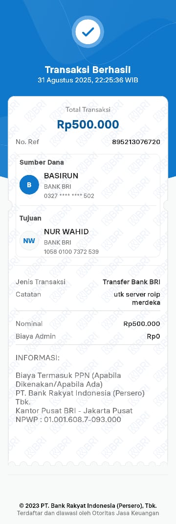 | 11 | 02-11-2025 | Rp 200.000,- | - | Donasi Server RoipMerdeka dari JZ24UAK | Ada | - |