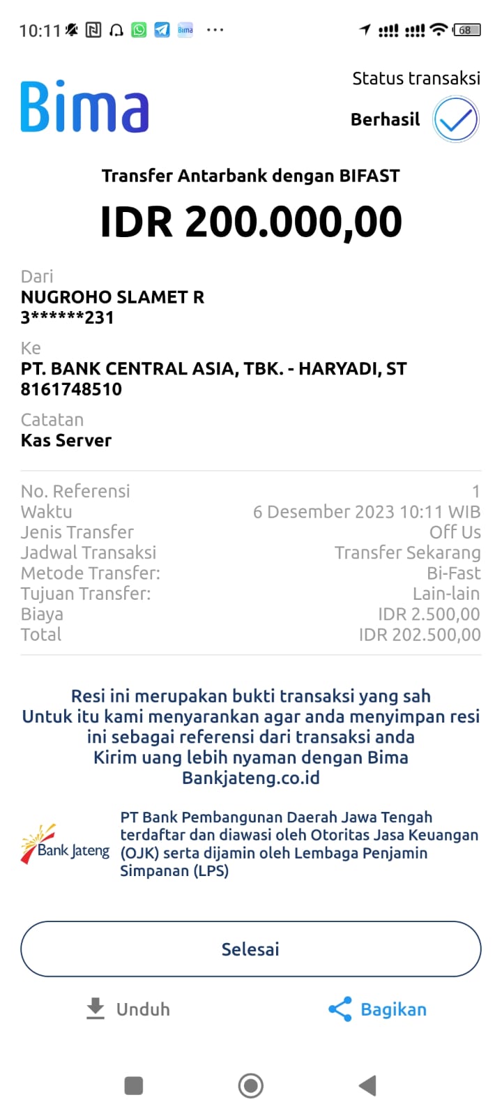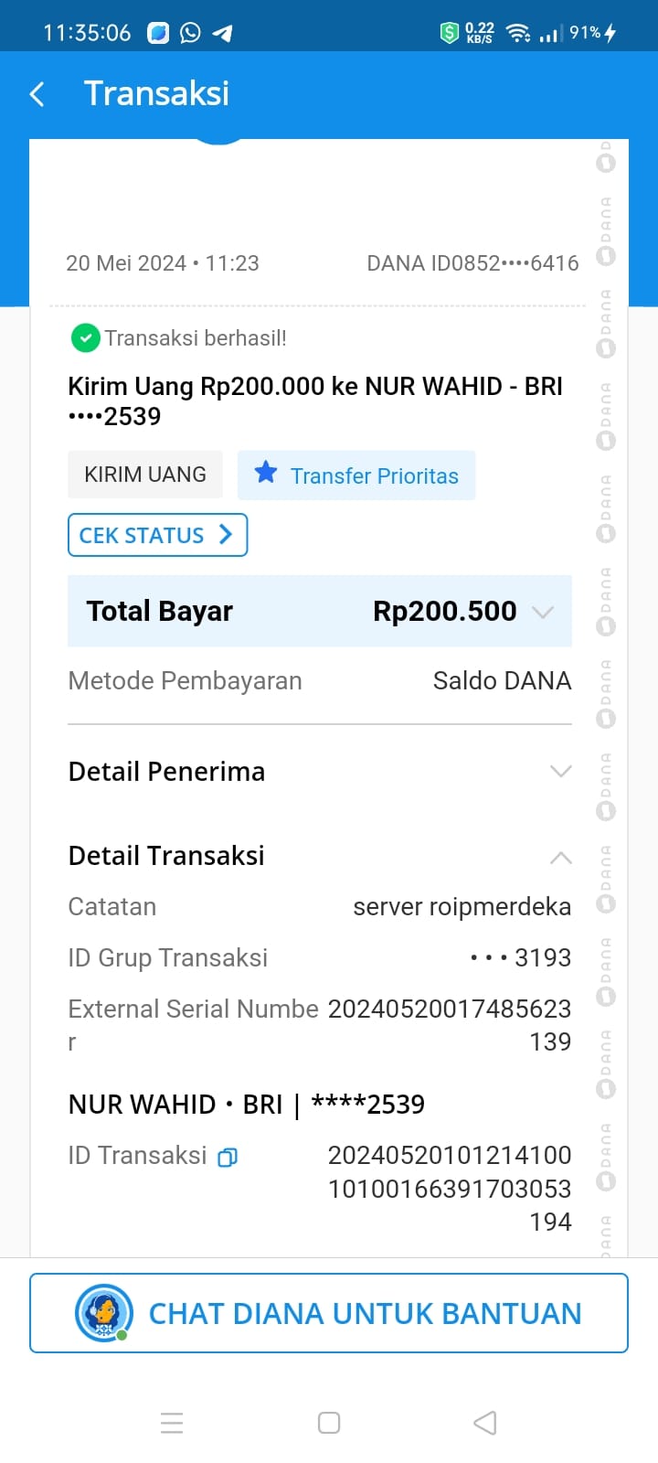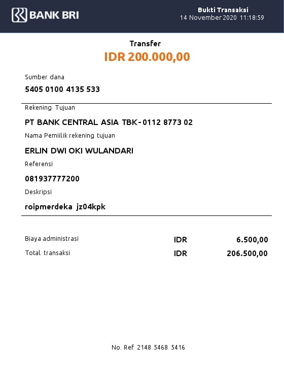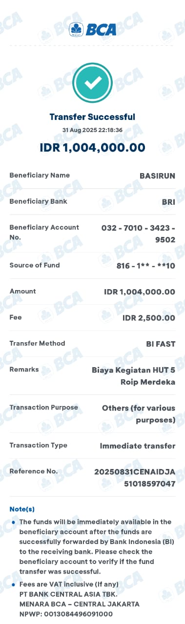 | 11 | 02-11-2025 | Rp 200.000,- | - | Donasi Server RoipMerdeka dari JZ24UAK | Ada | - |