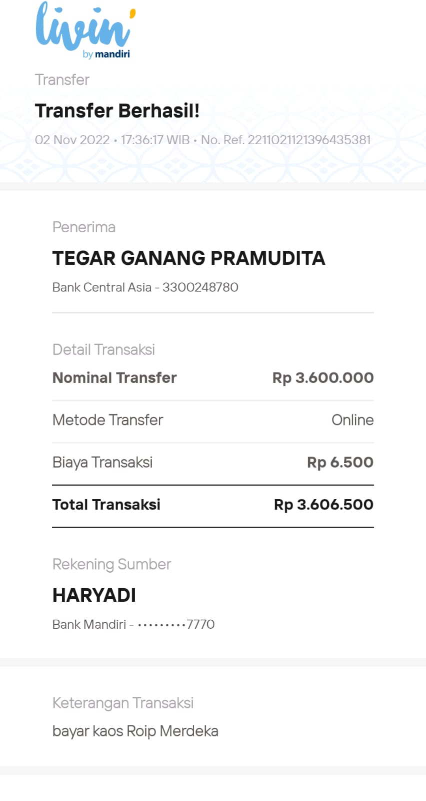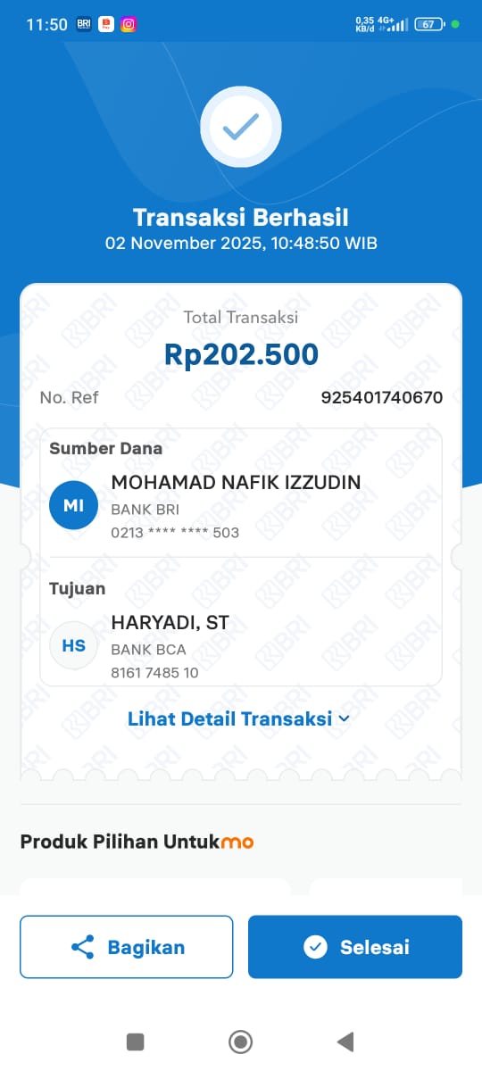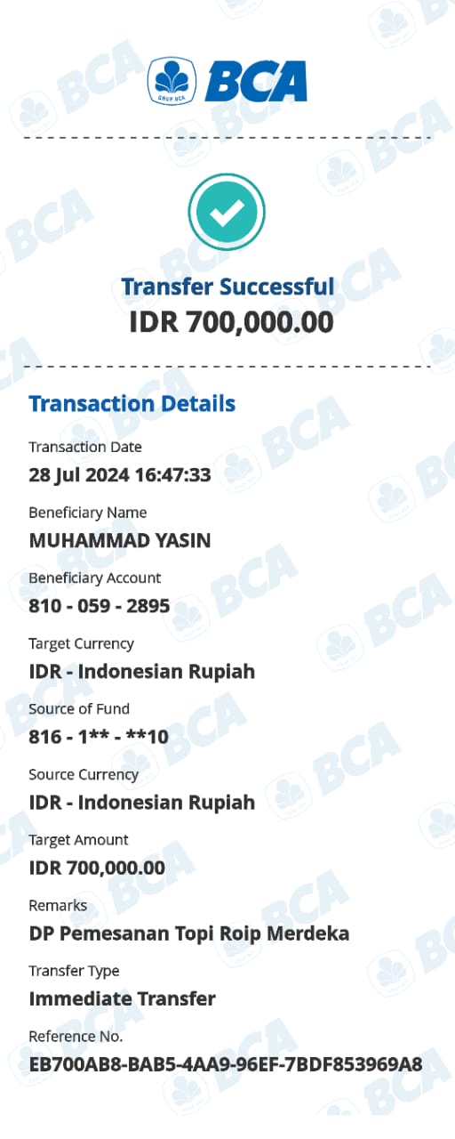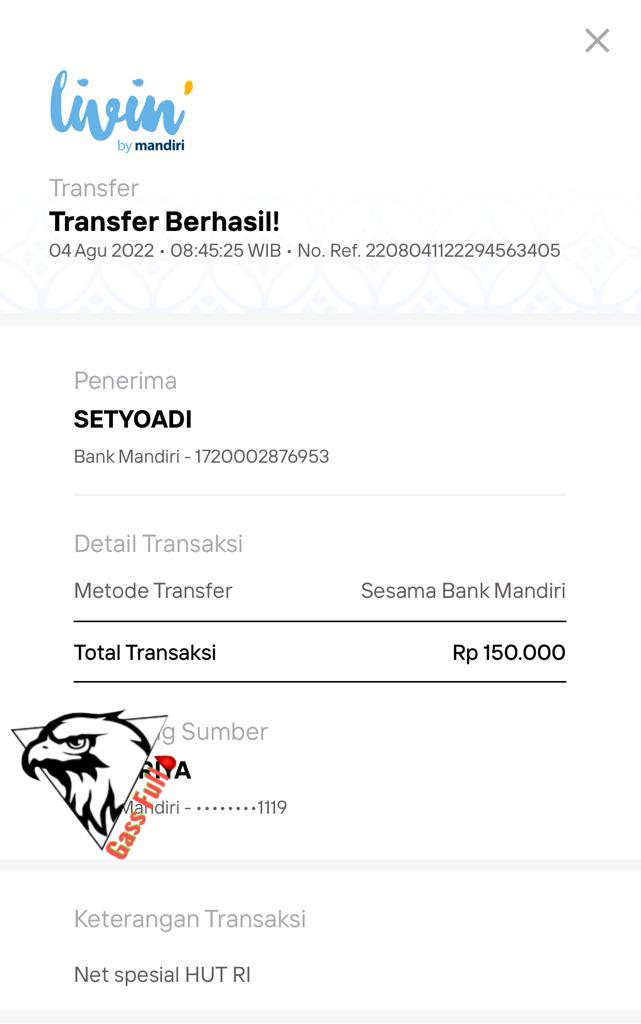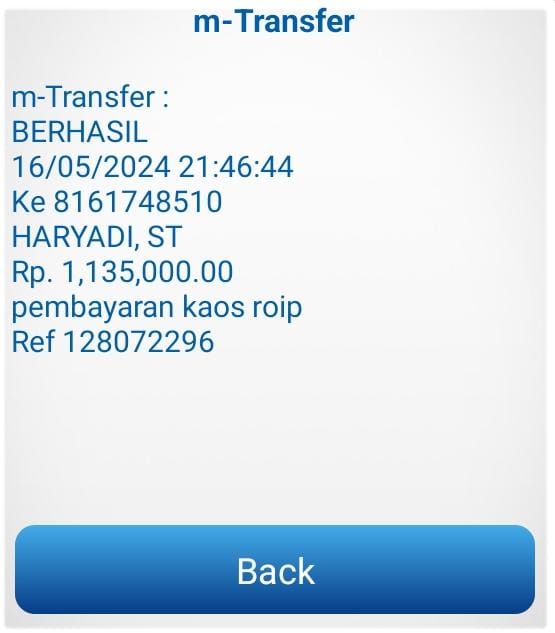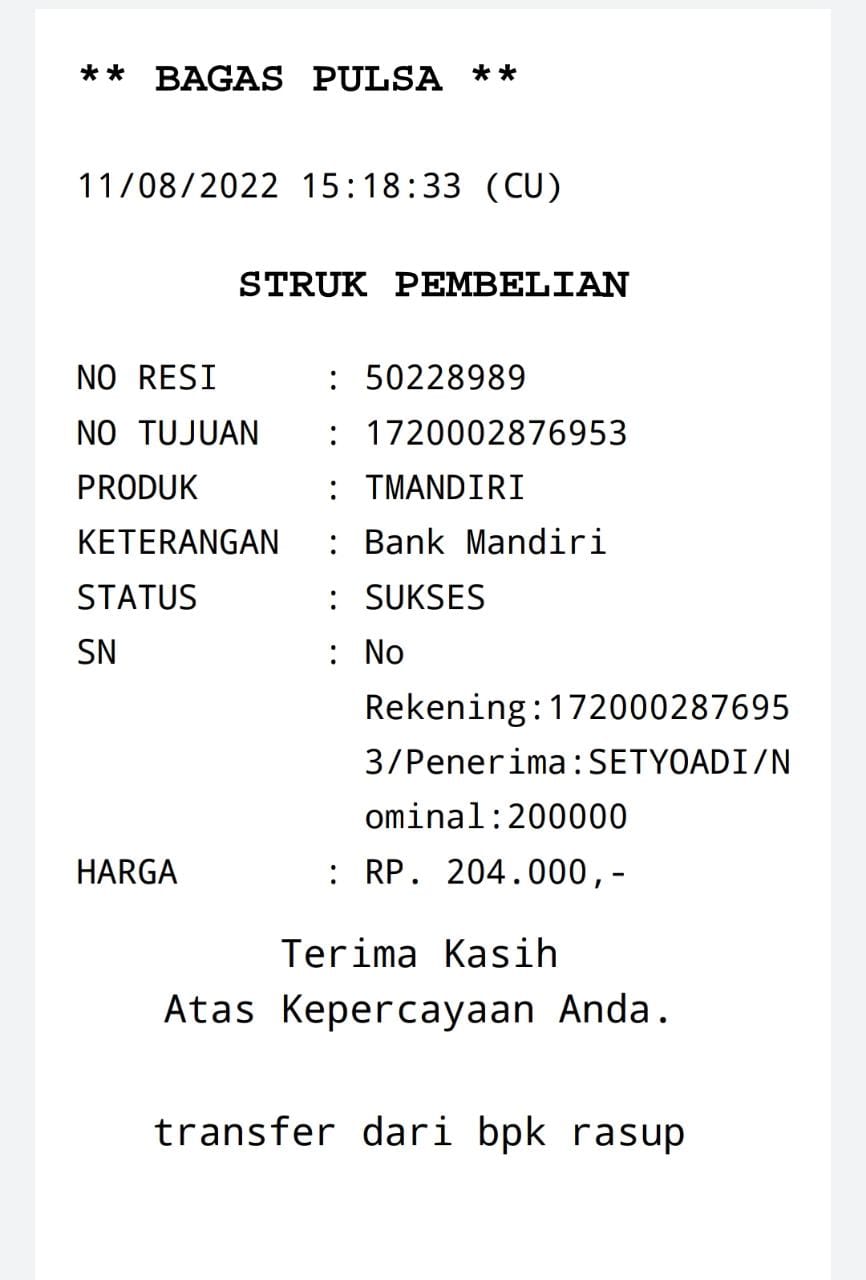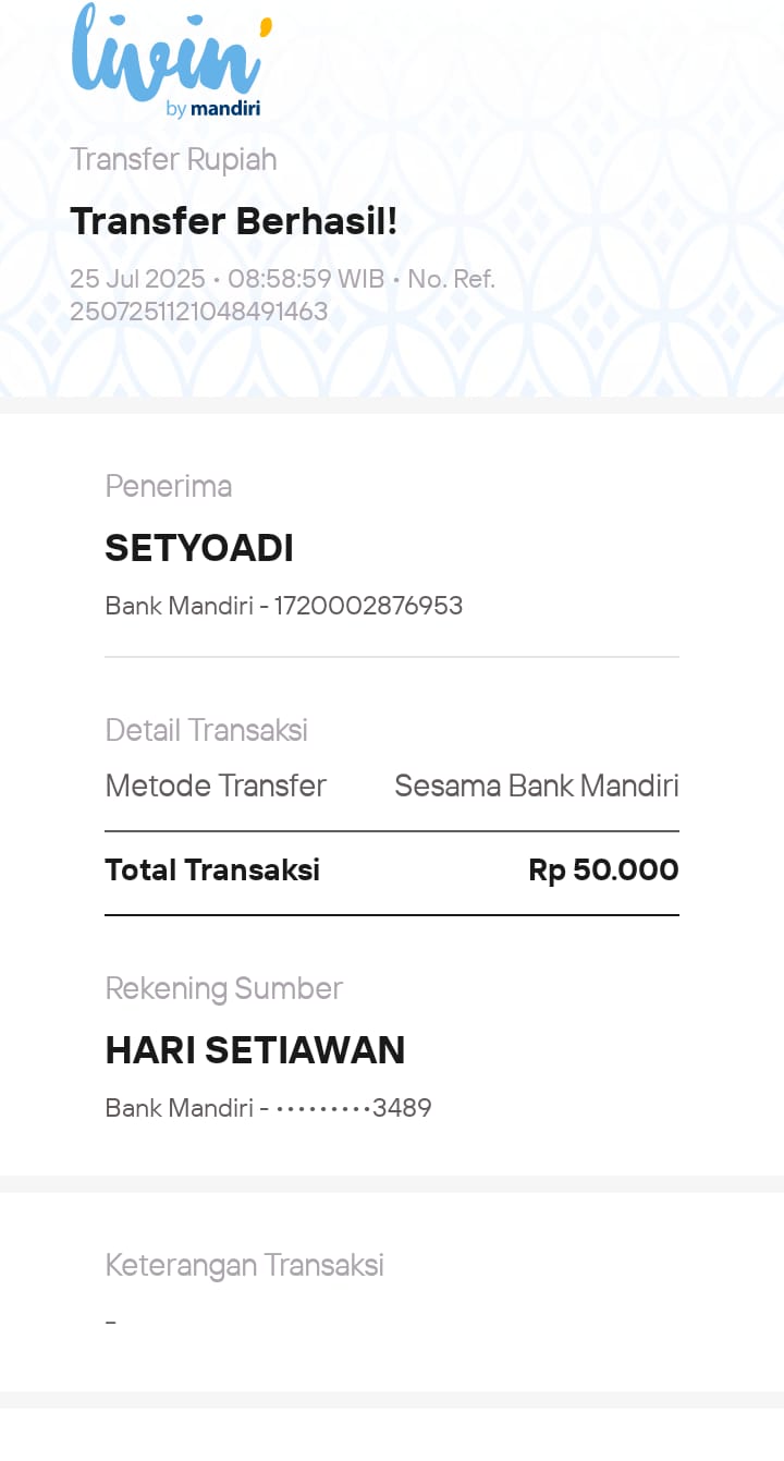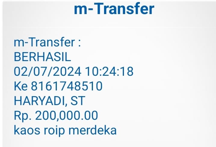 | 25 | 06-08-2025 | - | Rp 818.530,- | Pembelian 3 Buah HT Hadiah 10-98 HUT Roip Merdeka | Ada | - |