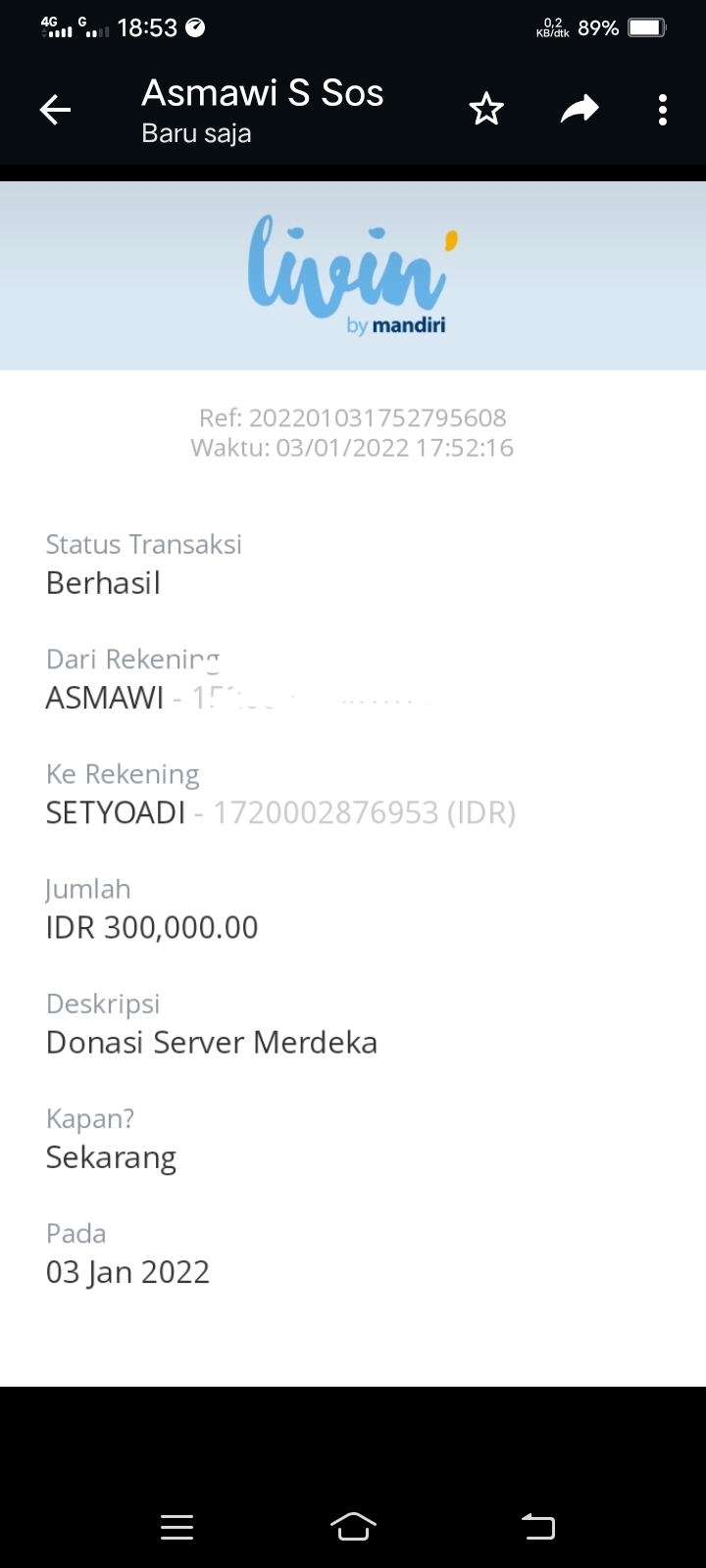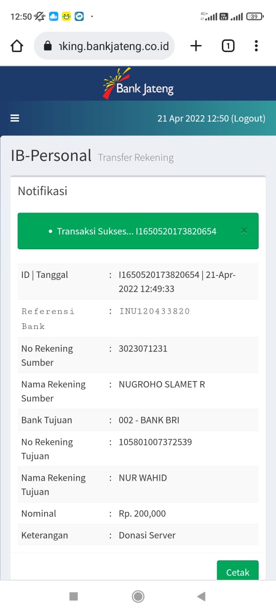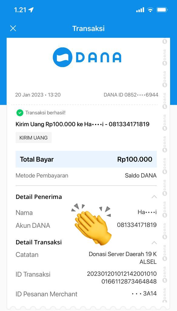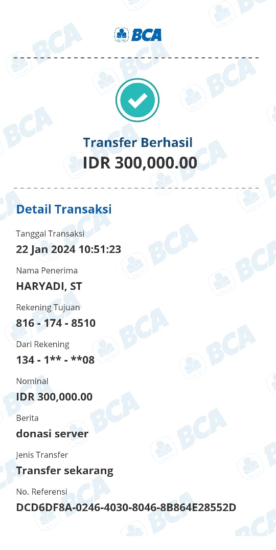 | 473 | 25-12-2020 | Rp 50.000,- | - | Donasi server dari JZ19GFW, SALAPUDDIN | Ada | - |