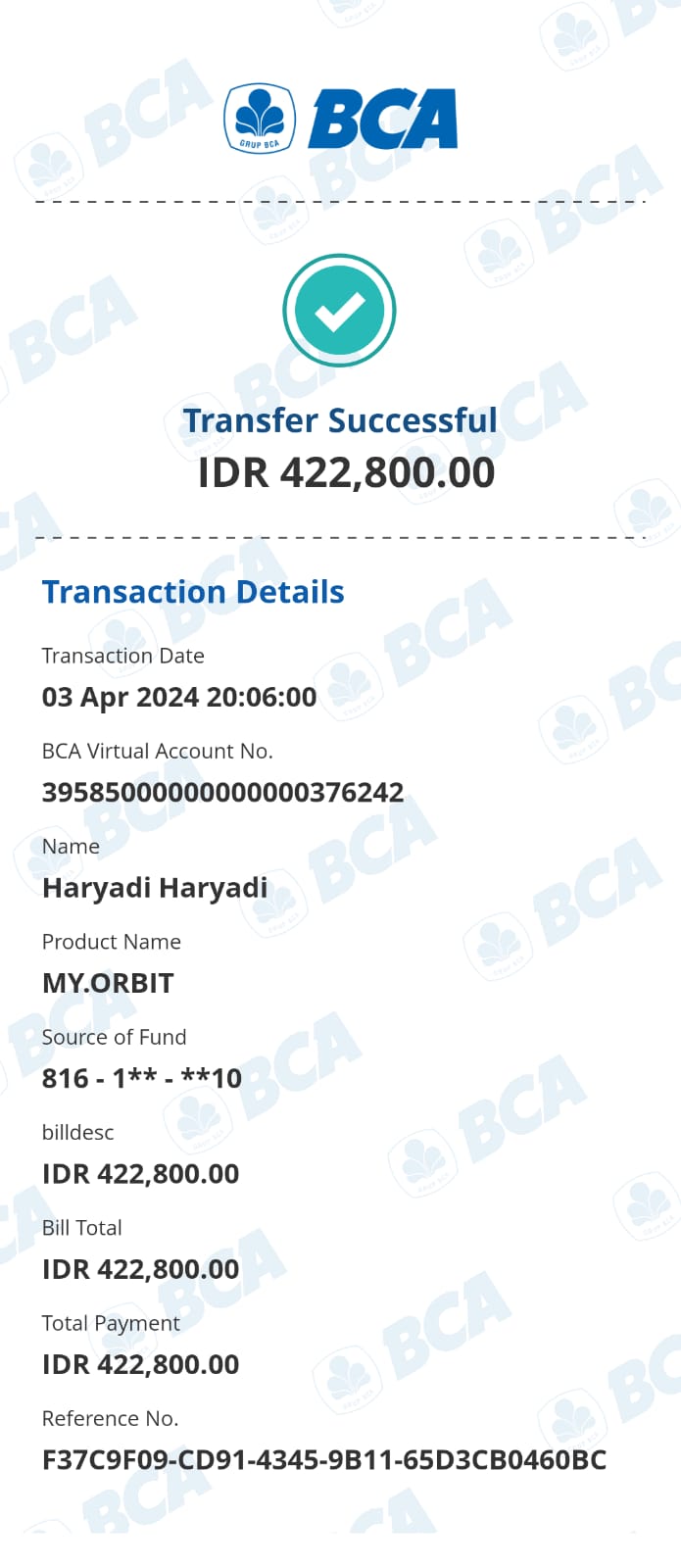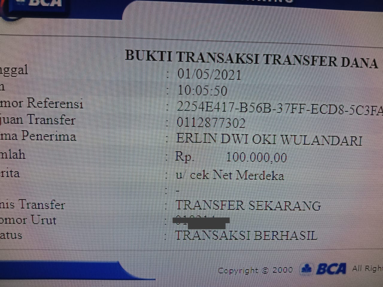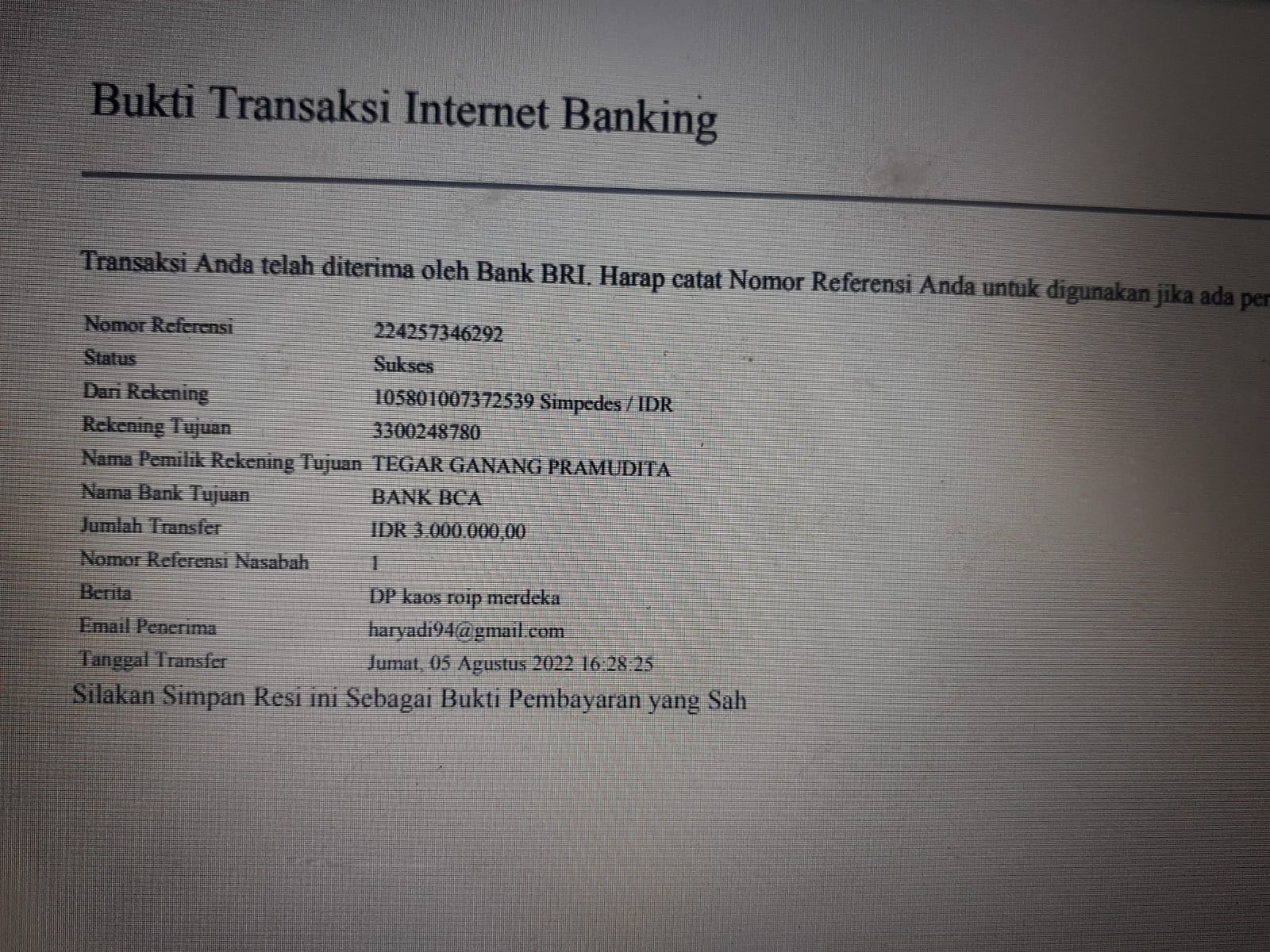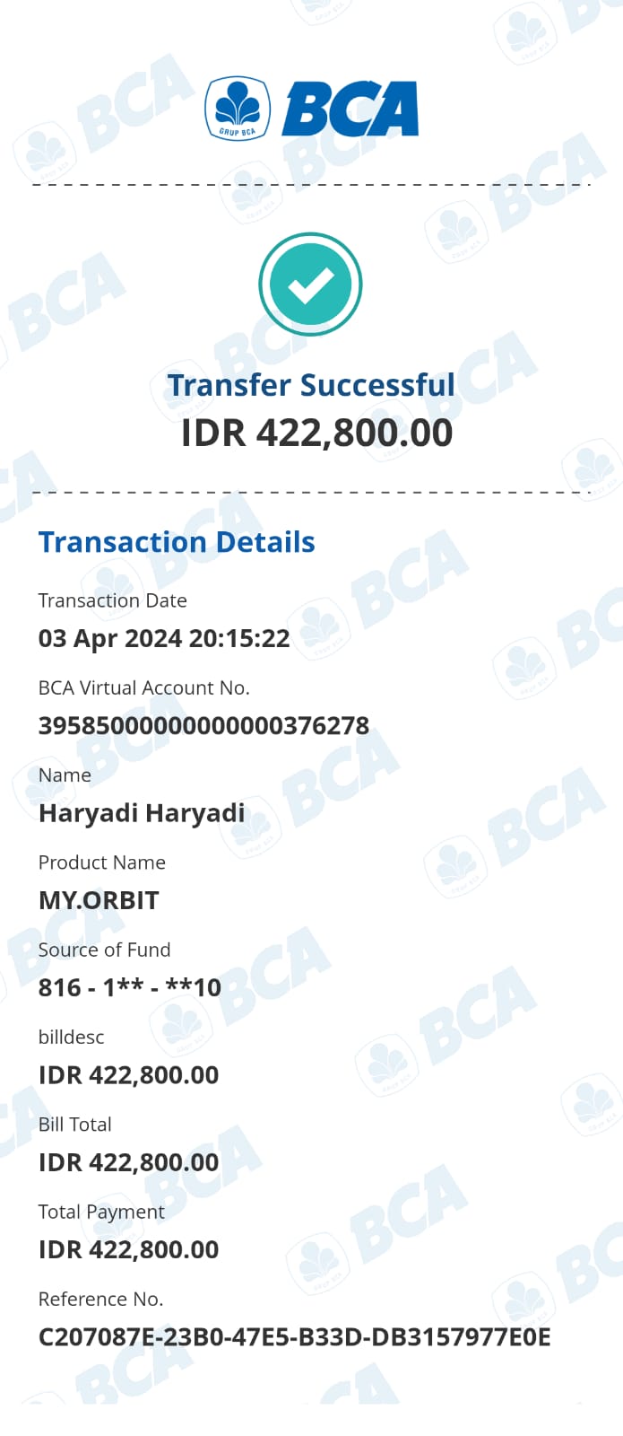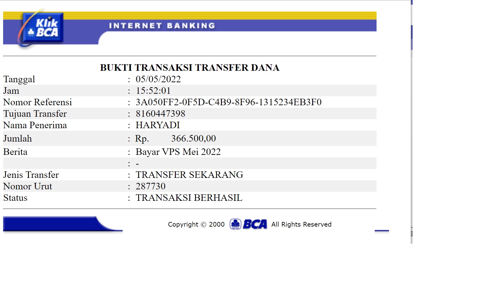 Kunjungi situs: https://ibank.klikbca.com/User ID: HARYADIS3110. PIN Internet Banking: 123456