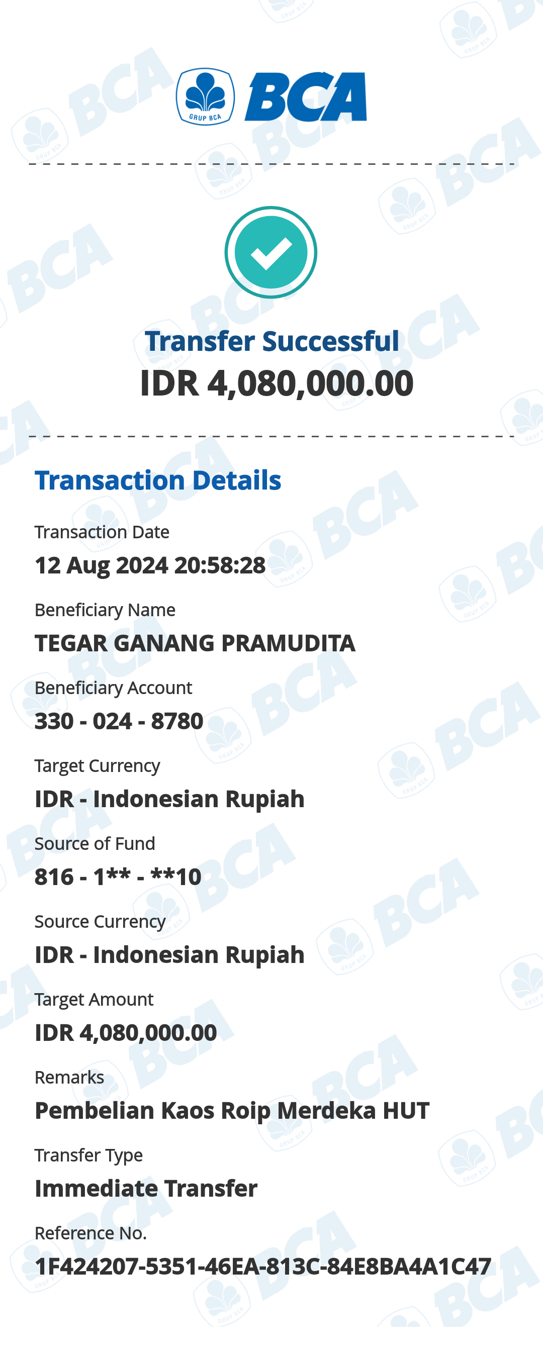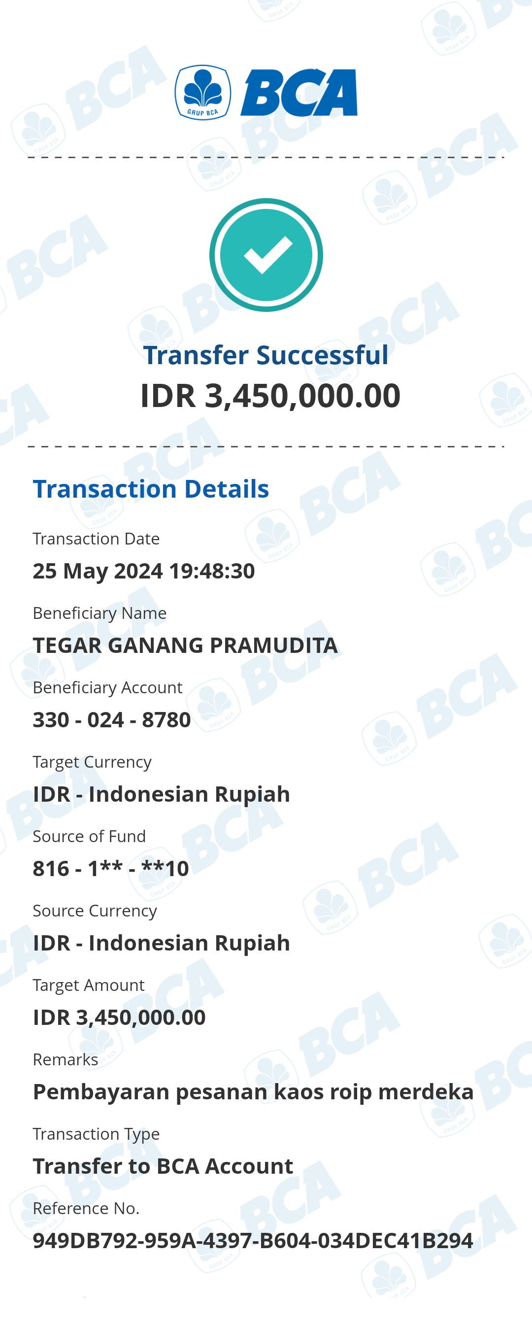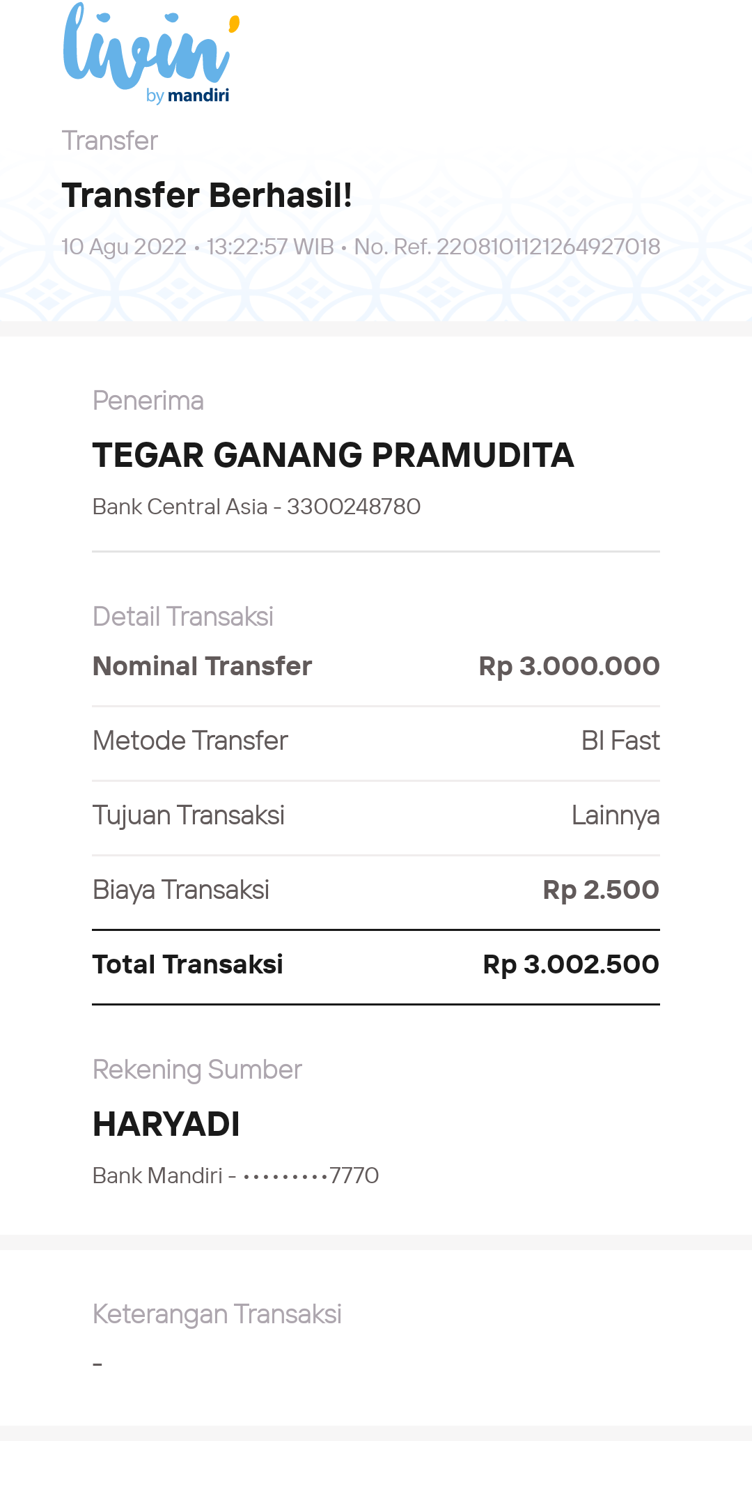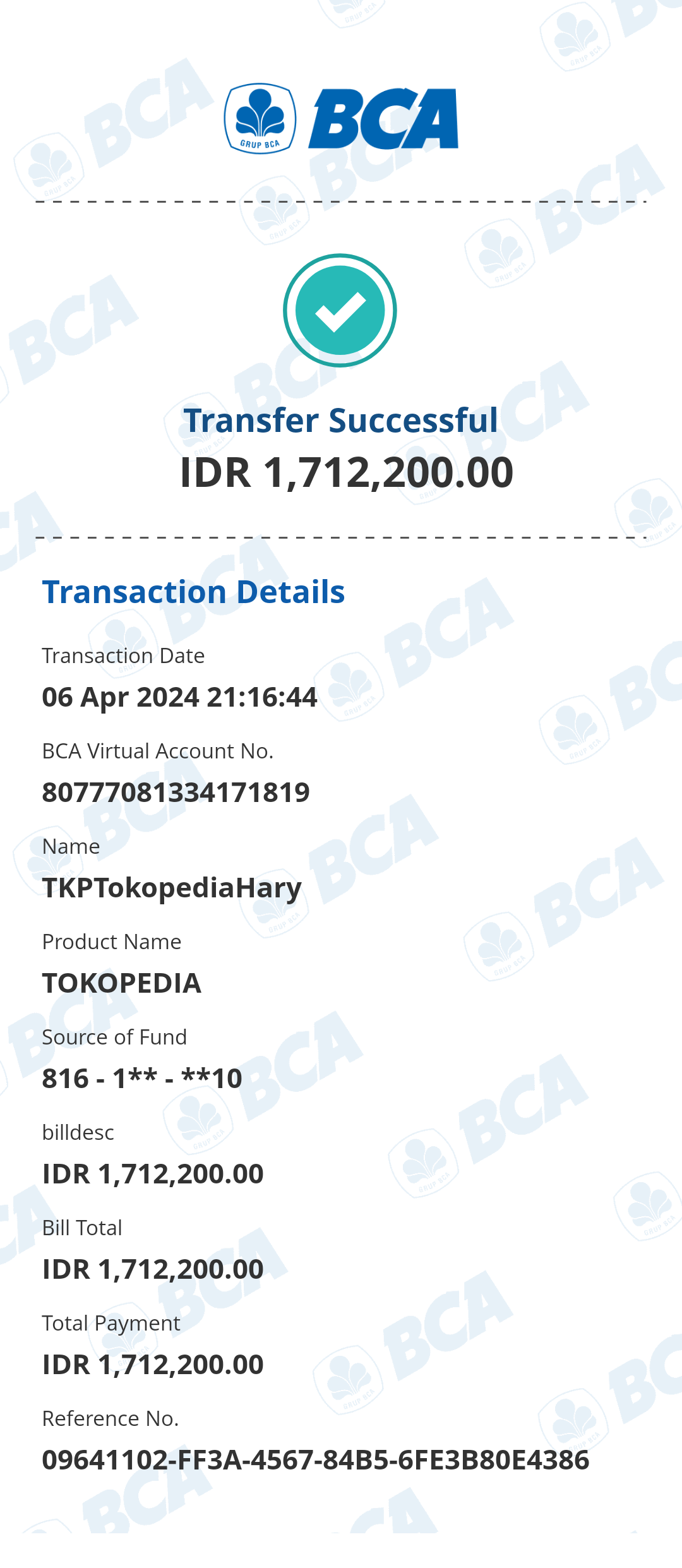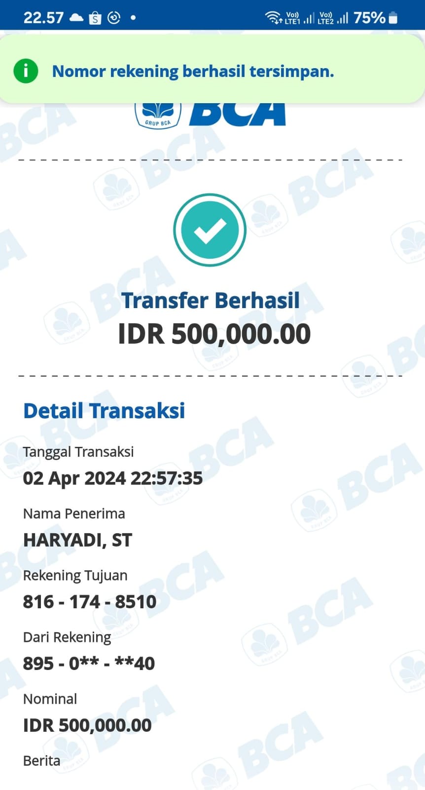 Kunjungi situs: https://ibank.klikbca.com/User ID: HARYADIS3110. PIN Internet Banking: 123456