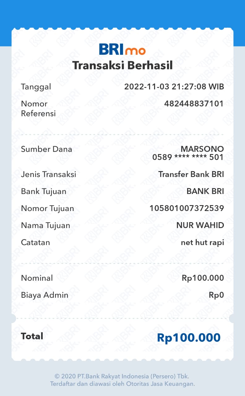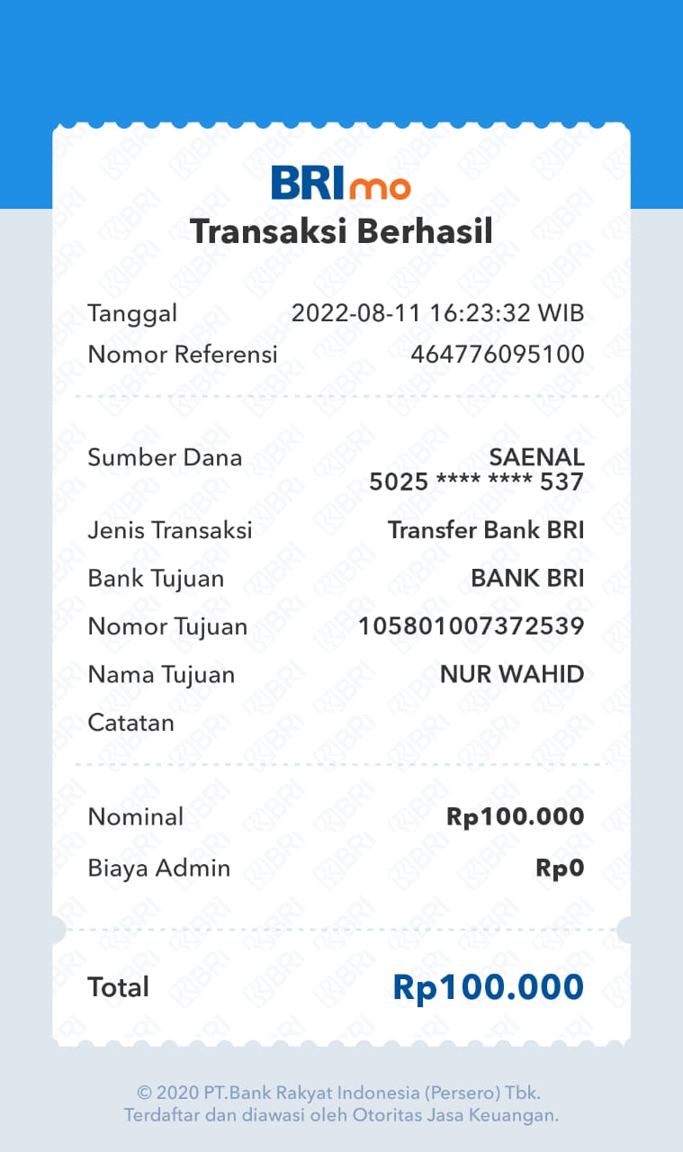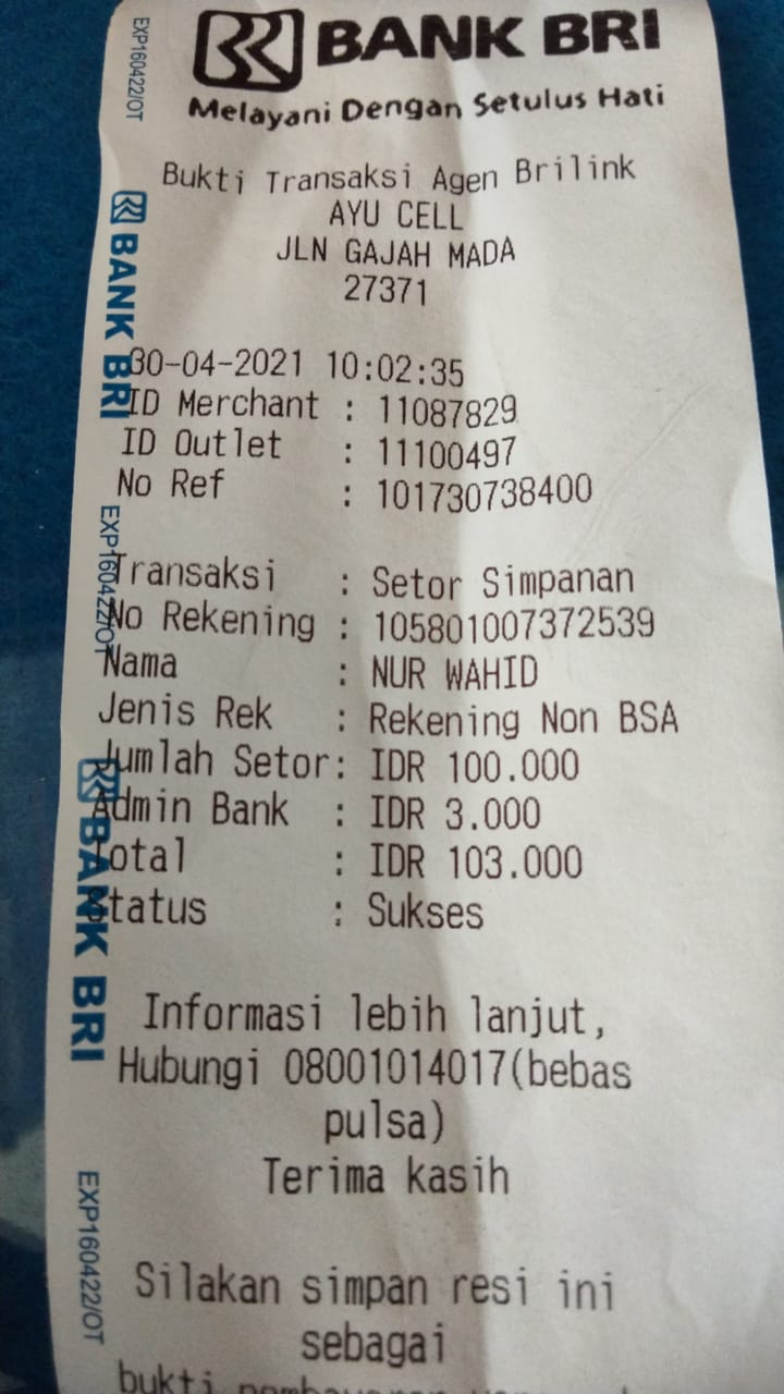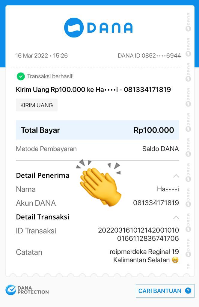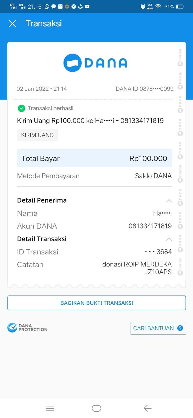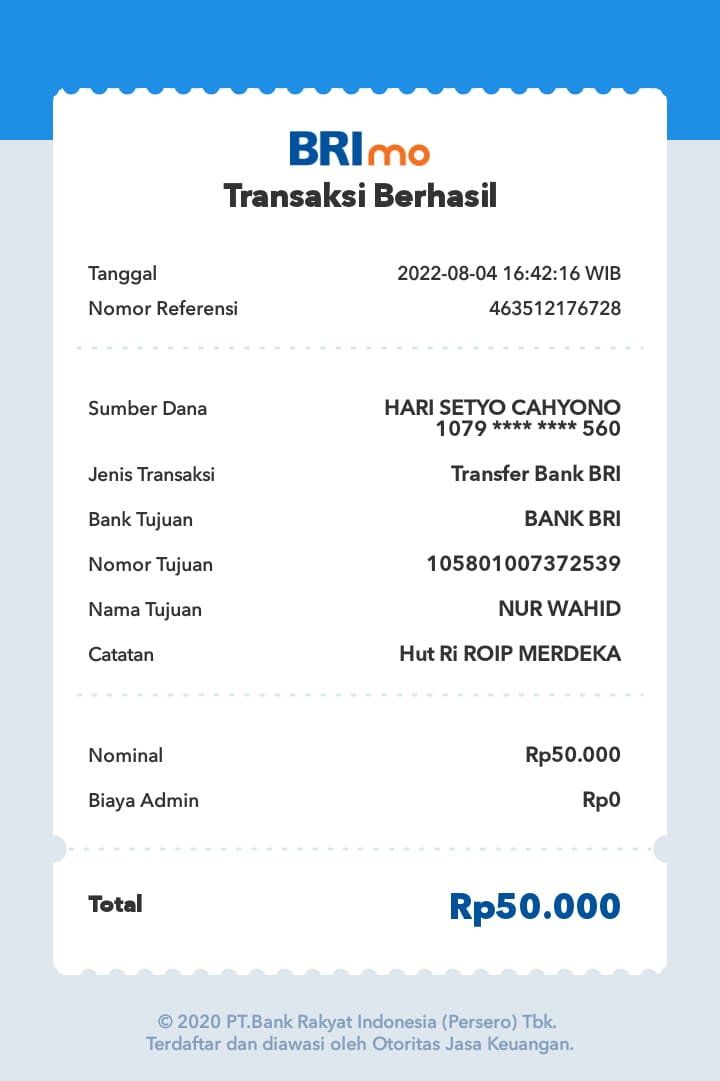 | 462 | 08-01-2021 | Rp 100.000,- | - | Donasi ROIP Merdeka, dari JZ04NUR Nur Hasan | Ada | - |