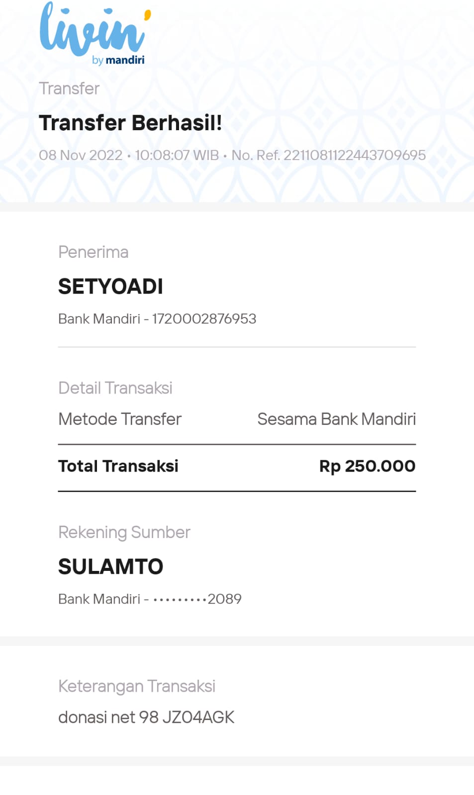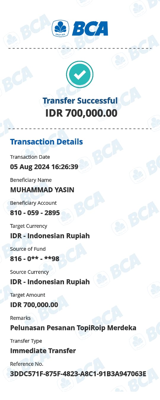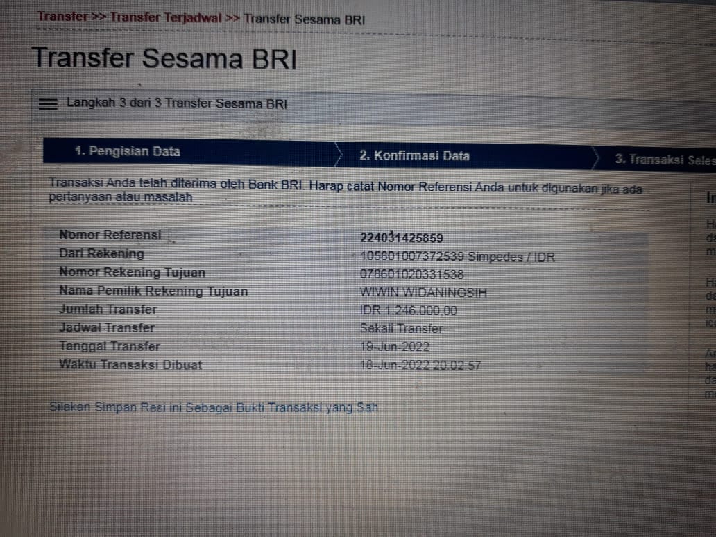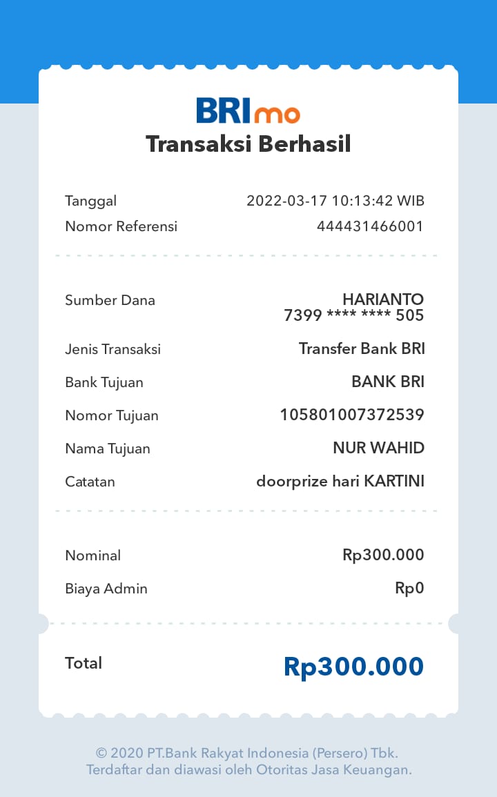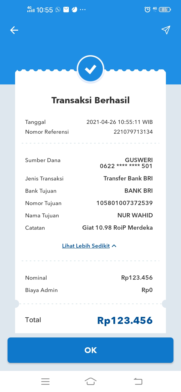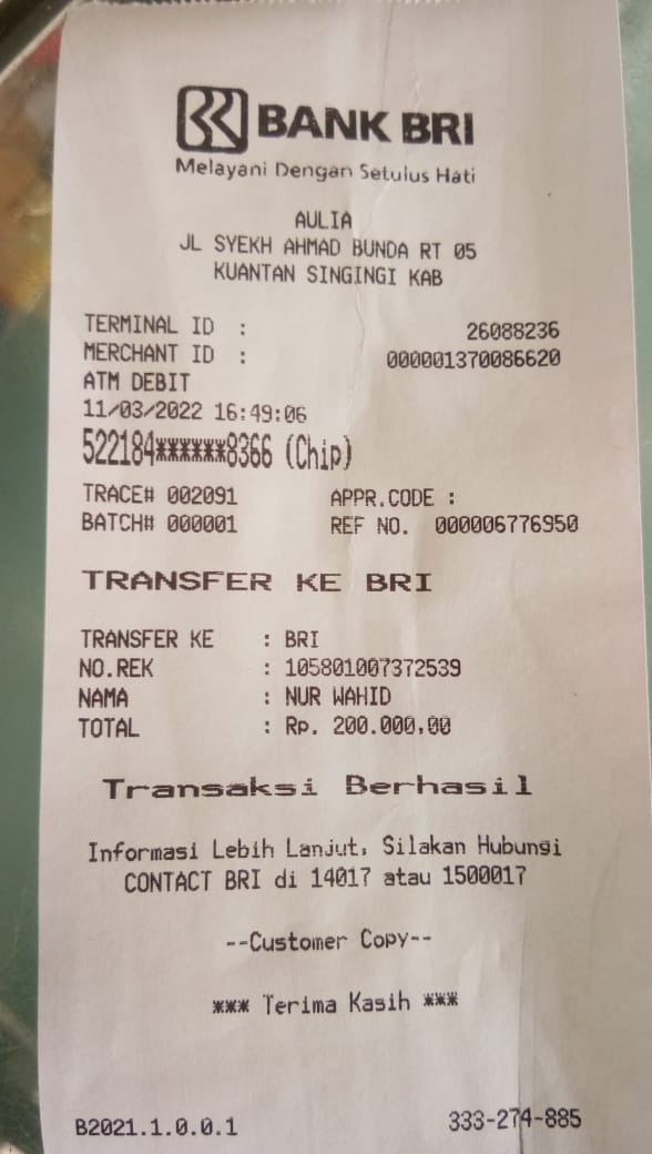 | 457 | 03-02-2021 | Rp 250.000,- | - | Donasi roip merdeka dari JZ04AGK Sulamto | Ada | - |