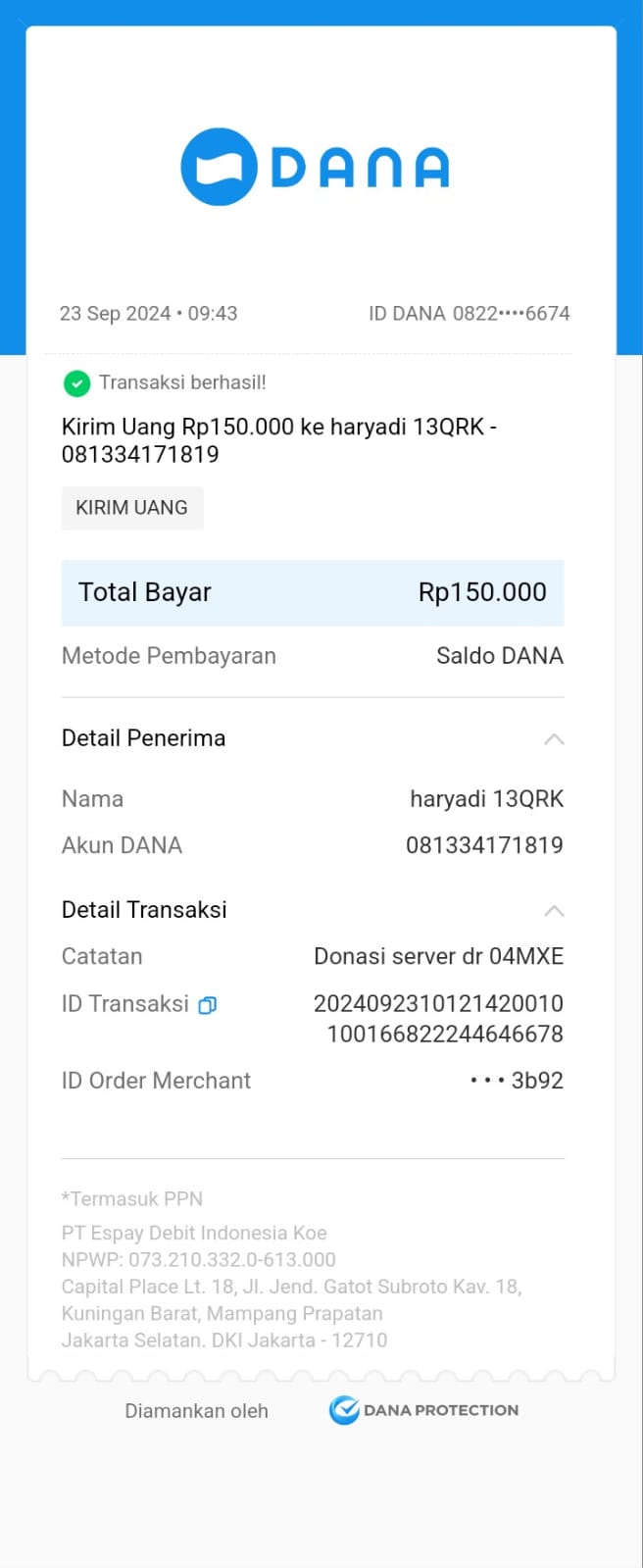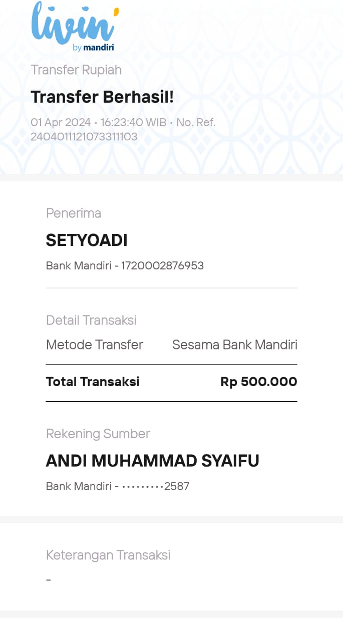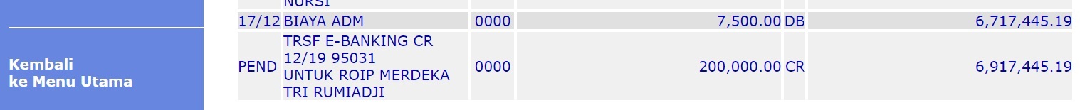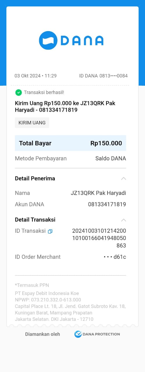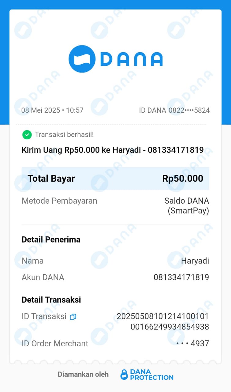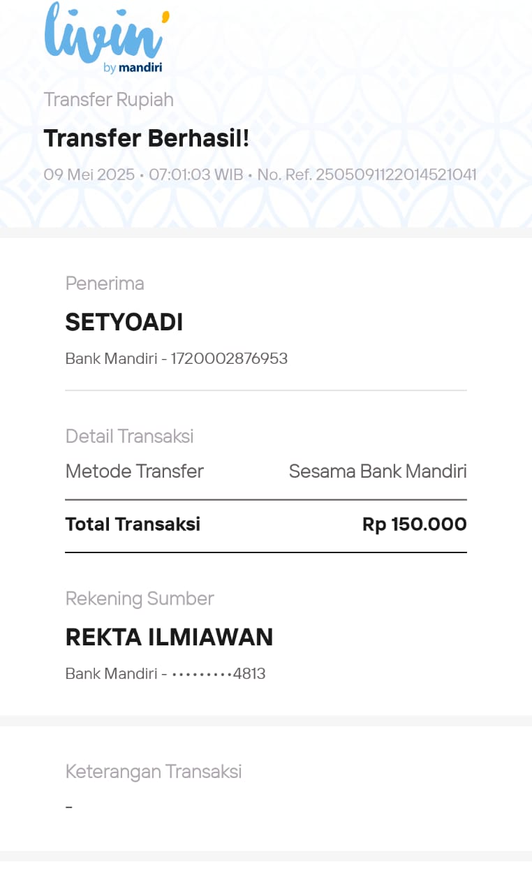 | 85 | 17-05-2025 | Rp 241.000,- | - | Donasi kas server dari JZ12BQM | Ada | - |