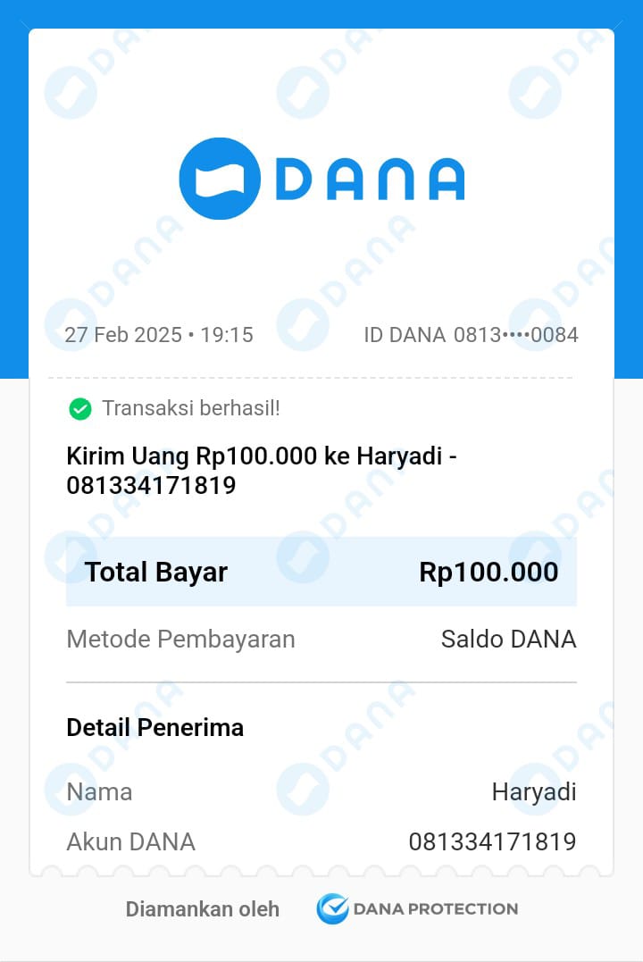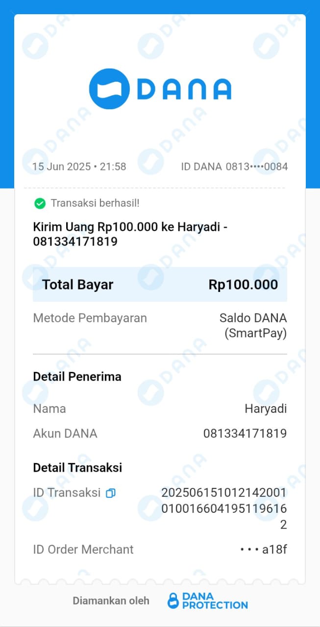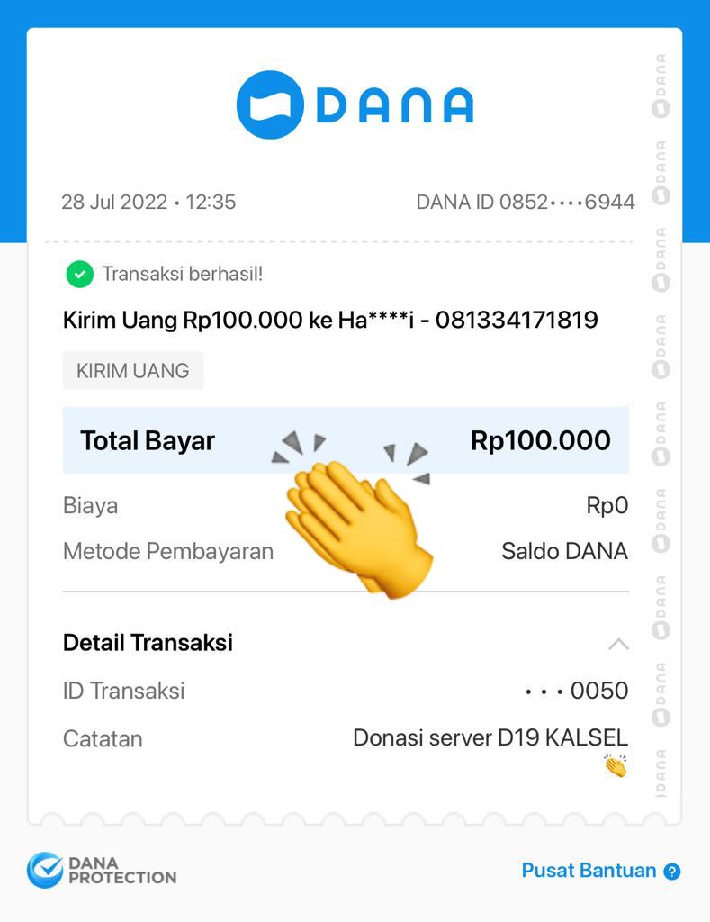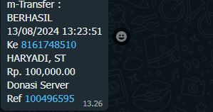 | 26 | 13-08-2025 | Rp 100.000,- | - | Donasi Server dari JZ07AHK | Ada | - |