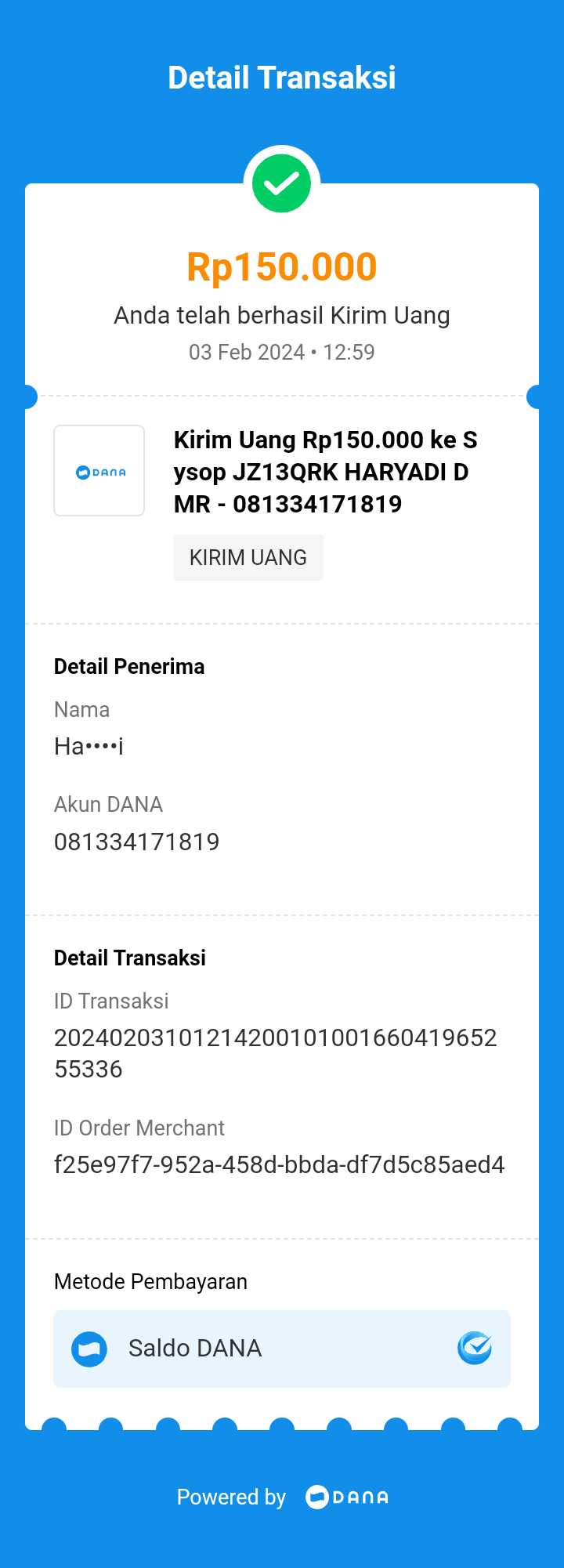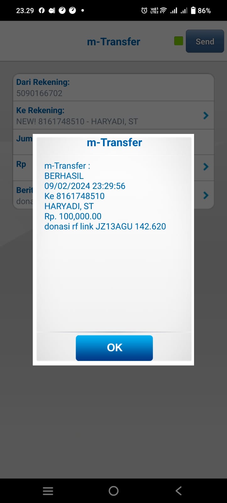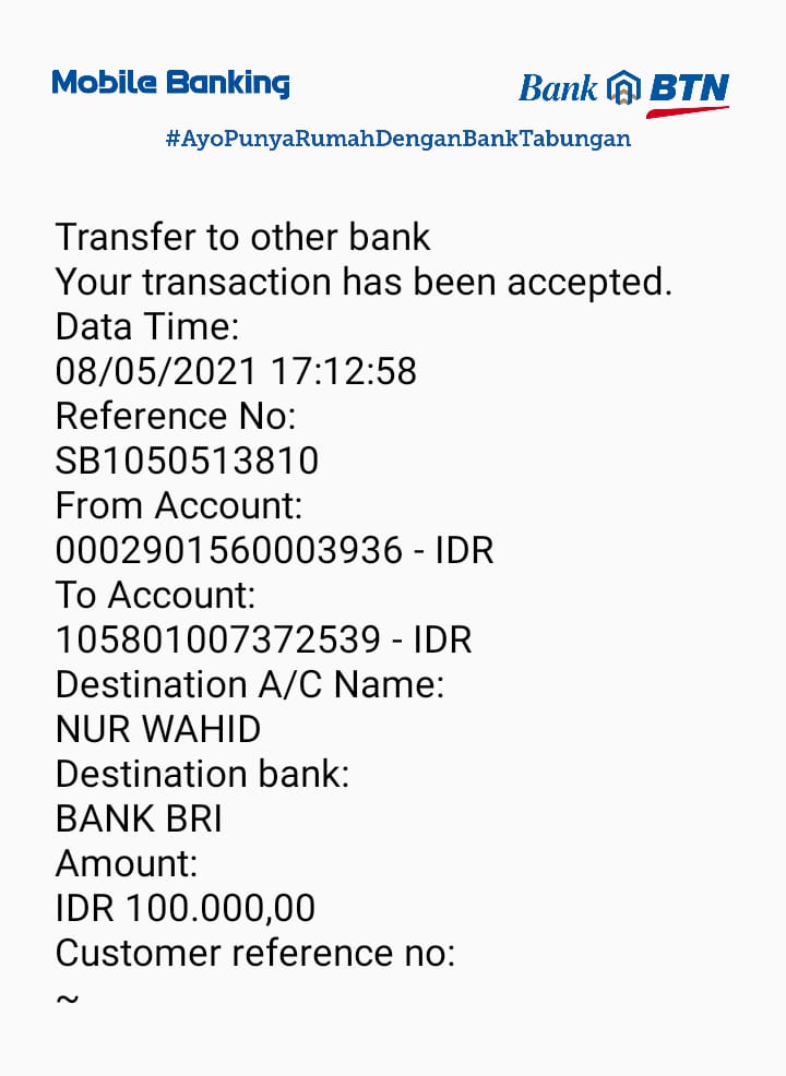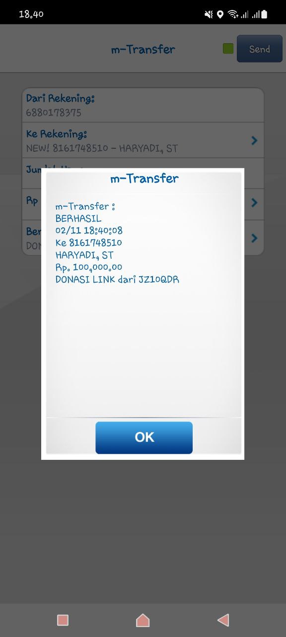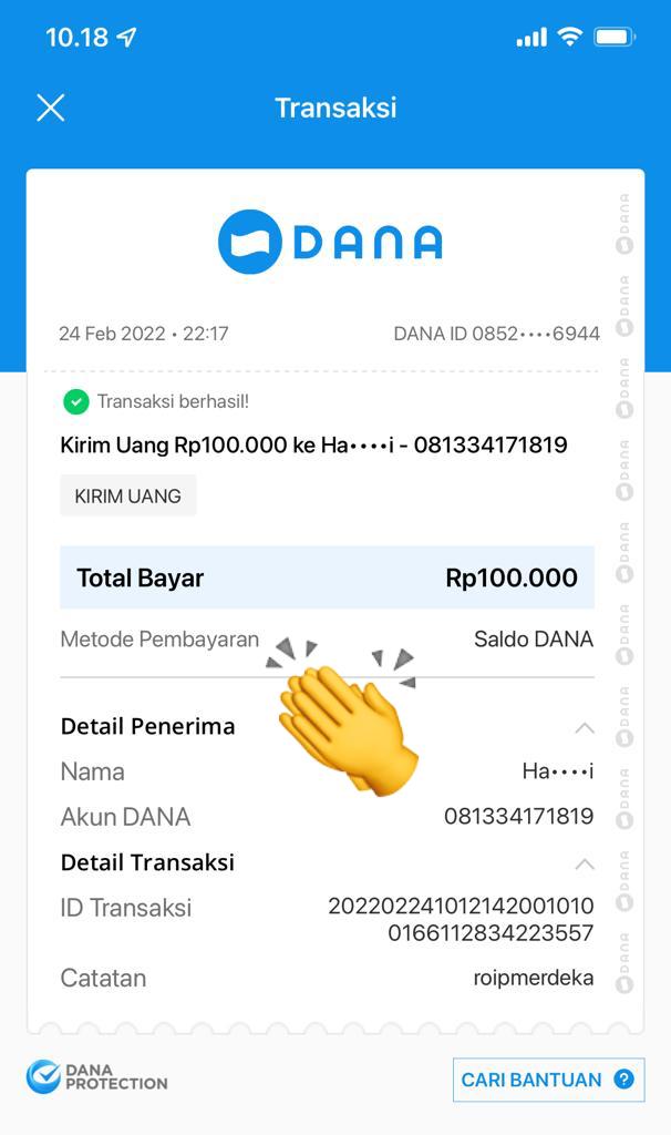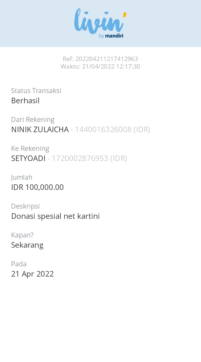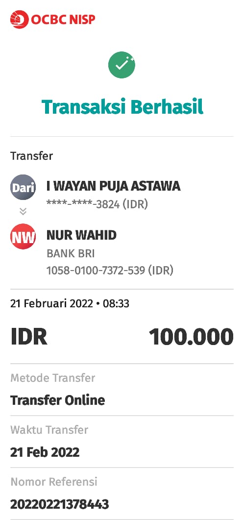 | 456 | 03-02-2021 | Rp 100.000,- | - | Donasi untuk Roip Meedeka dari JZ02HFP Yustinus Waruwu | Ada | - |