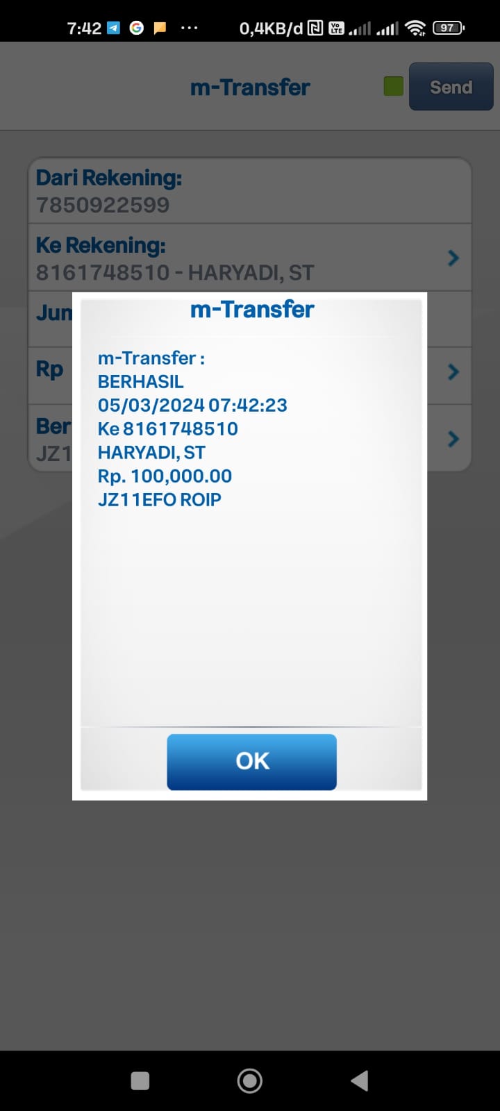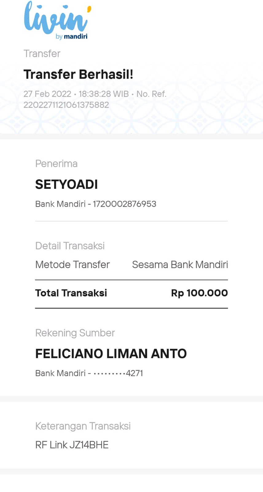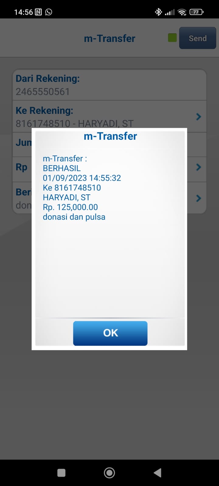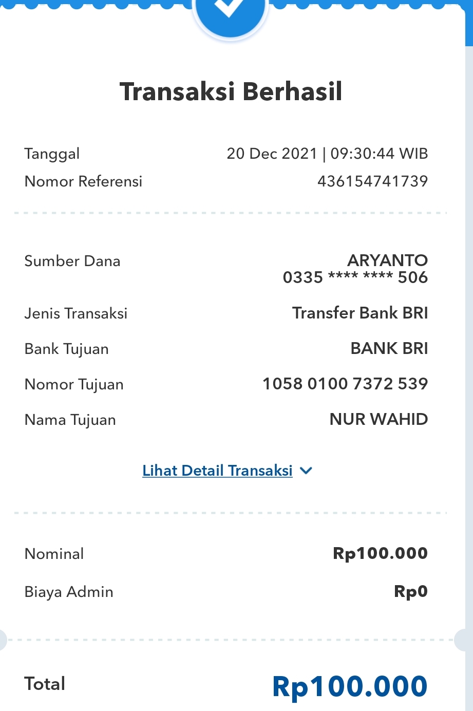 | 456 | 03-02-2021 | Rp 100.000,- | - | Donasi untuk Roip Meedeka dari JZ02HFP Yustinus Waruwu | Ada | - |