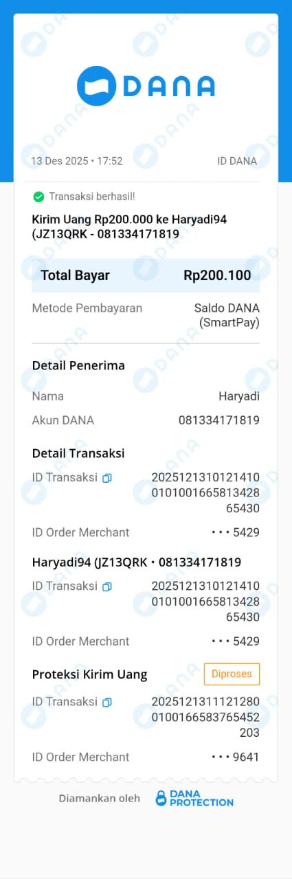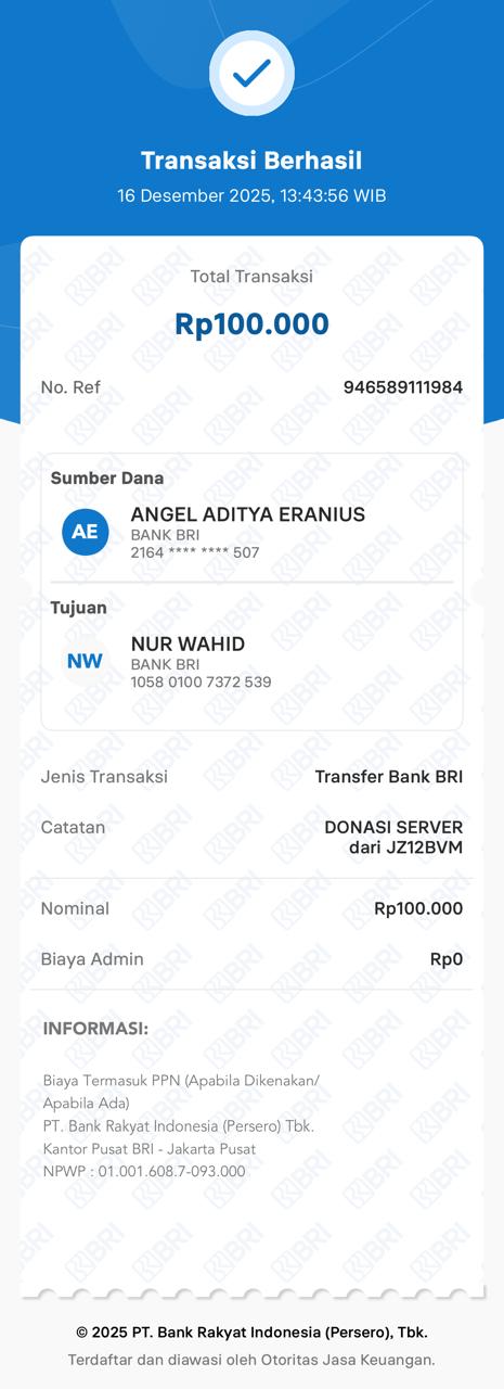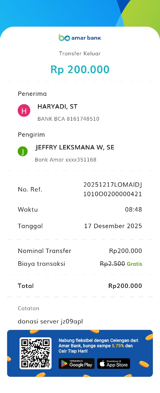 | 3 | 18-12-2025 | Rp 200.000,- | - | Donasi Server dari JZ13WIU | Ada | - |