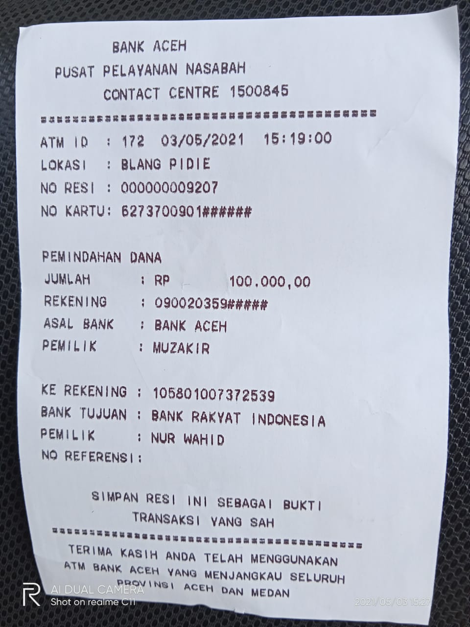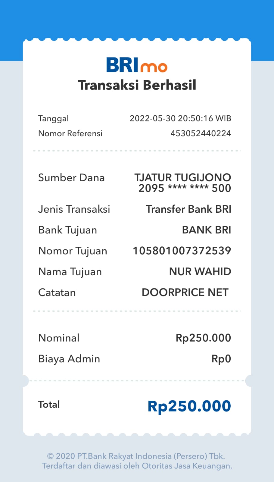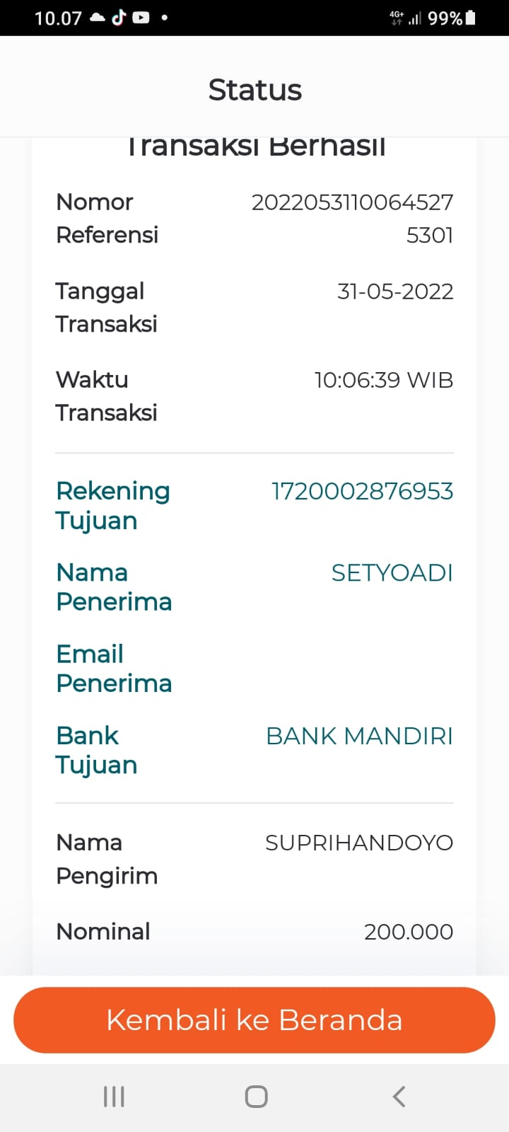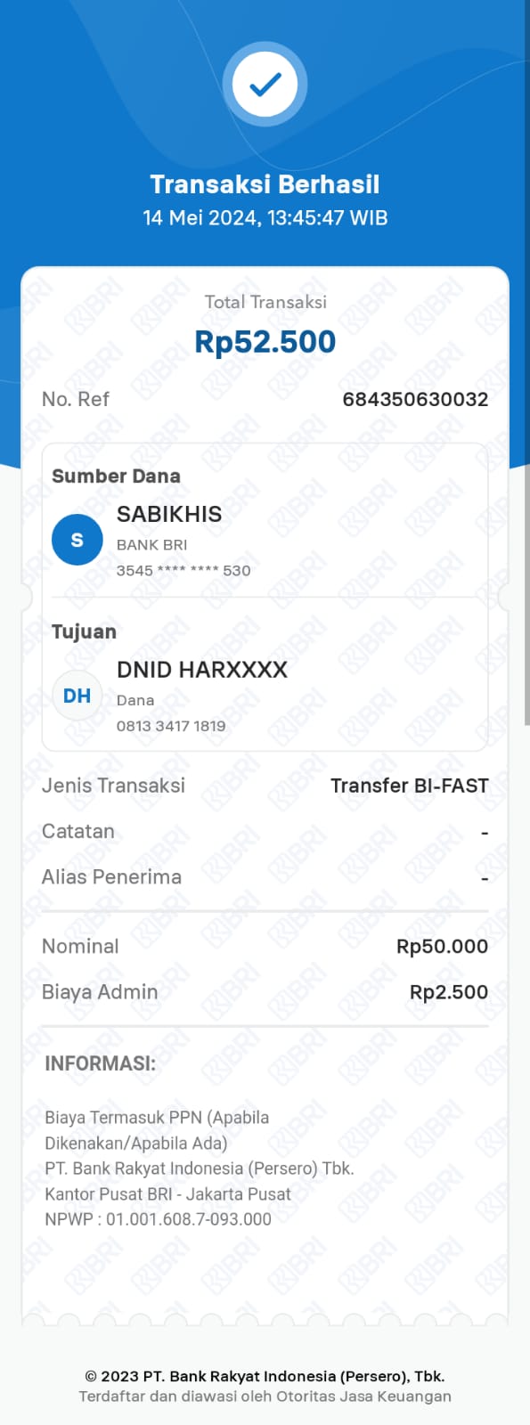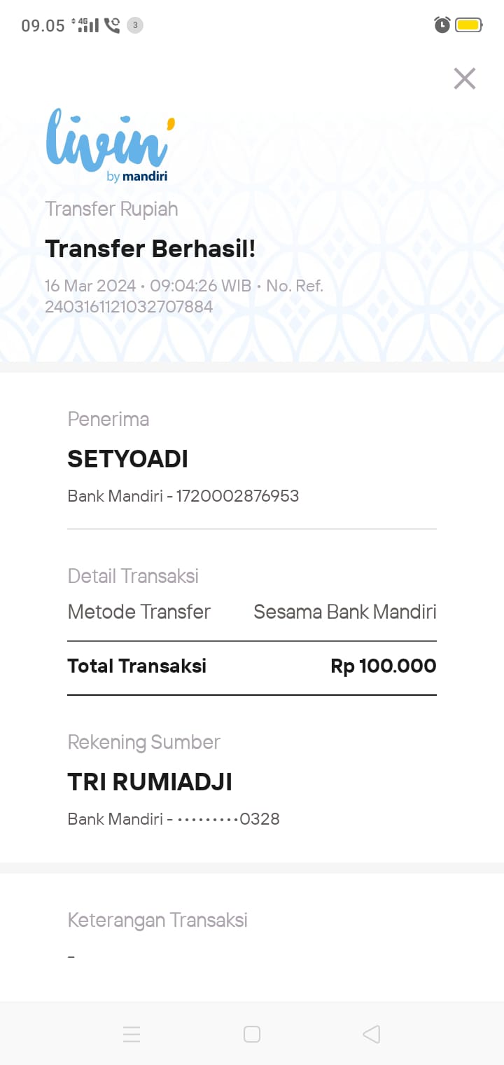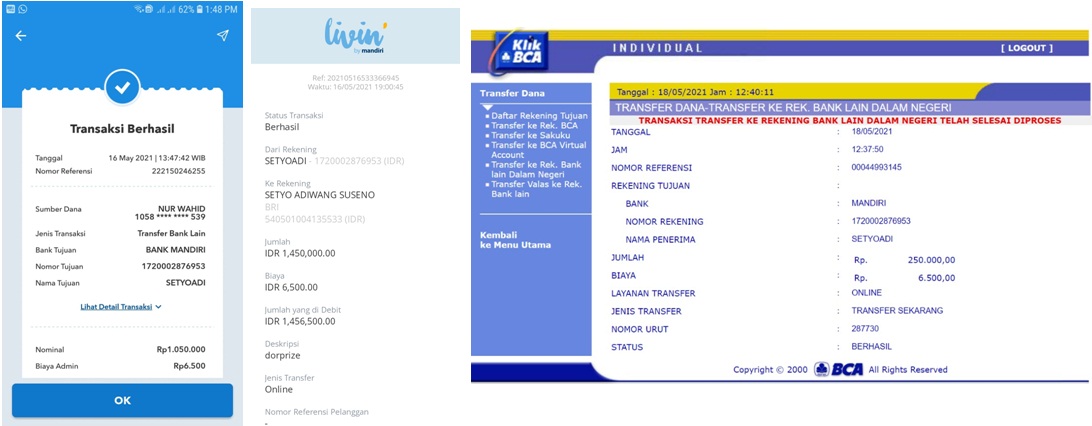 | 431 | 15-05-2021 | - | Rp 1.719.500,- | Dana untuk Dorprice Pulsa 1098 Spesial Ramadhan 2021 Room Indonesia dan Adm Transfer | Ada | Ada |