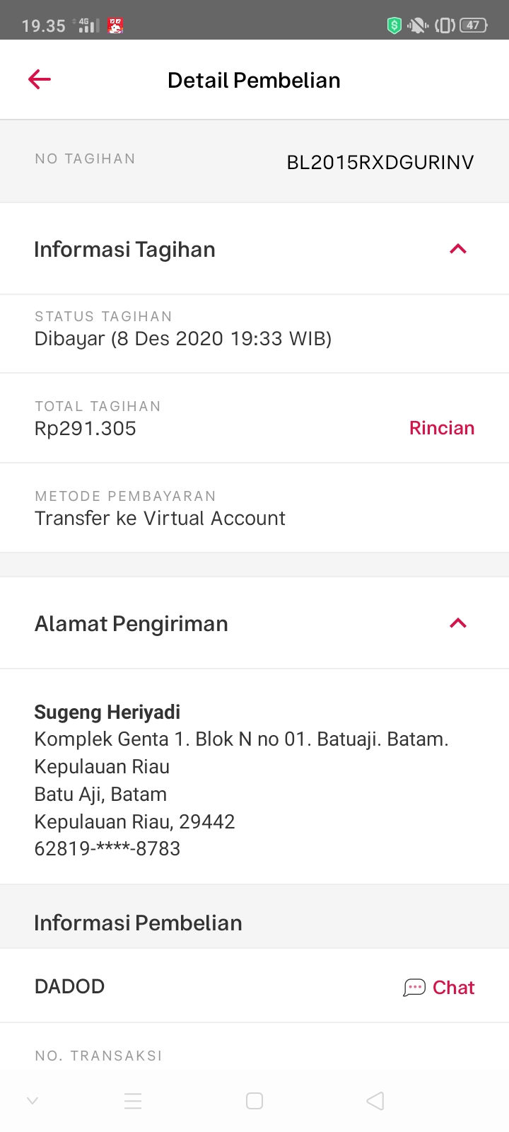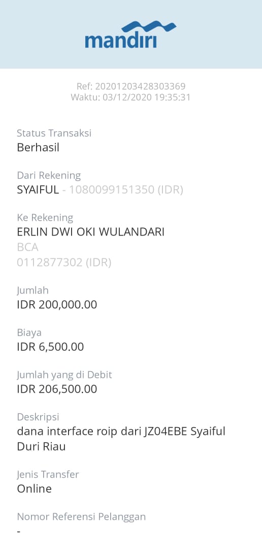 | 481 | 08-12-2020 | Rp 200.000,- | - | Pembayaran Interface untuk Room Indonesia dari JZ11CYO NURWAHID | Ada | - |