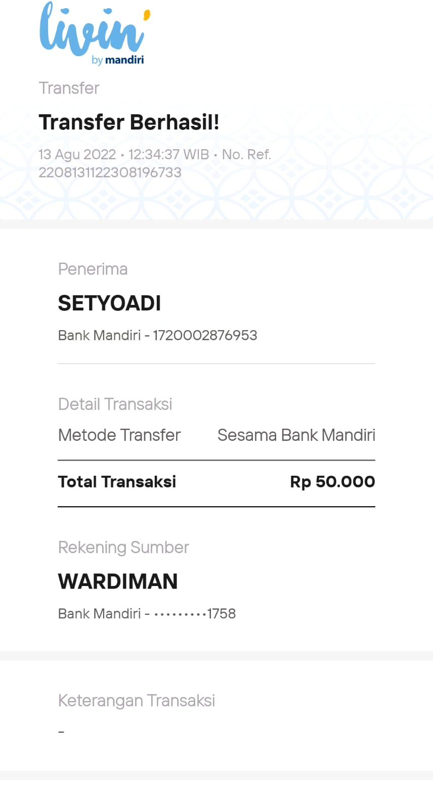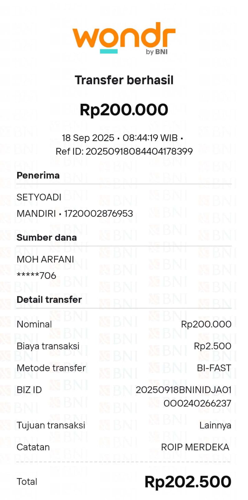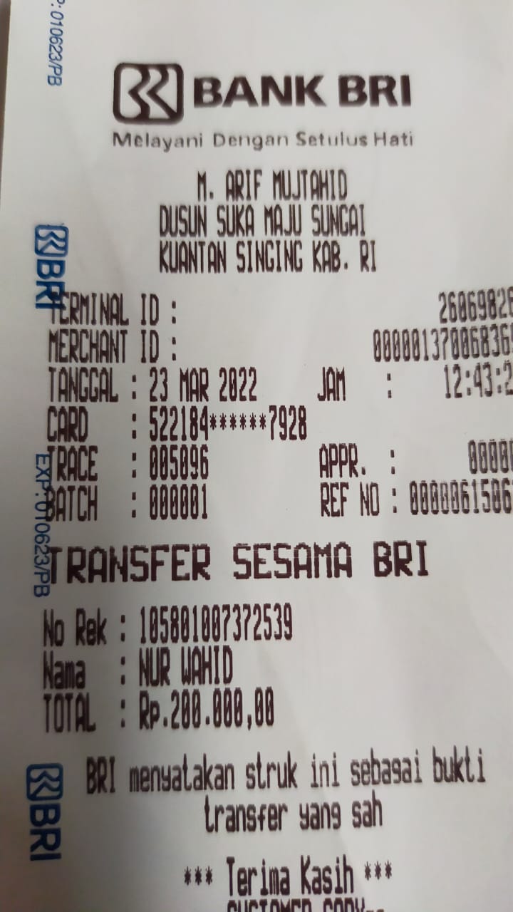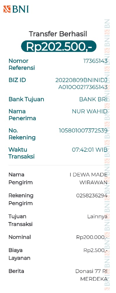 | 22 | 18-09-2025 | Rp 200.000,- | - | Donasi Server RoipMerdeka dari JZ11EFN Moh Arfani | Ada | - |