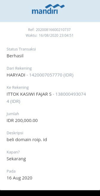 | 508 | 16-08-2020 | - | Rp 200.000,- | Bayar domain | Ada | - |