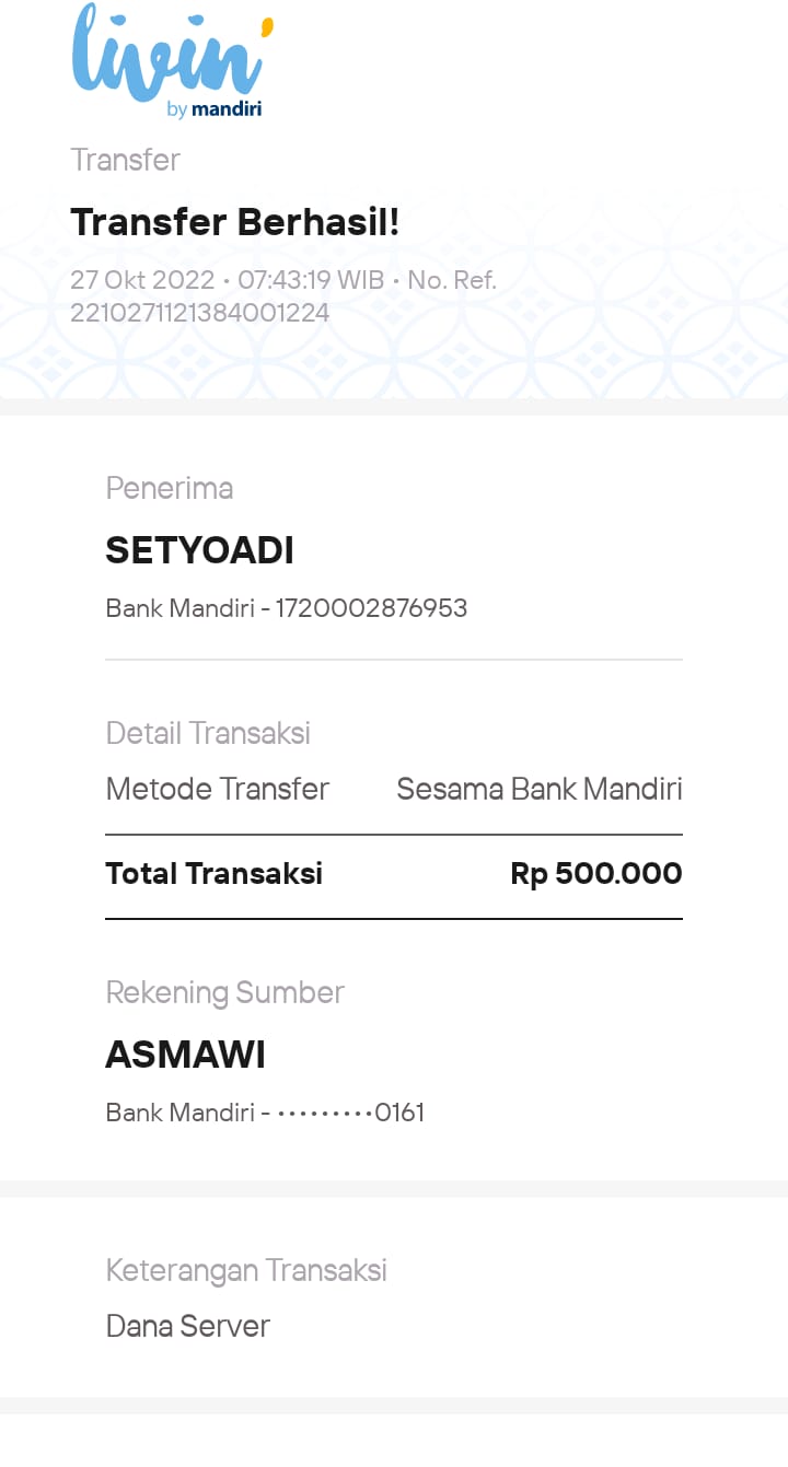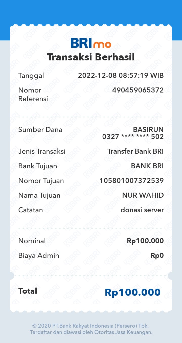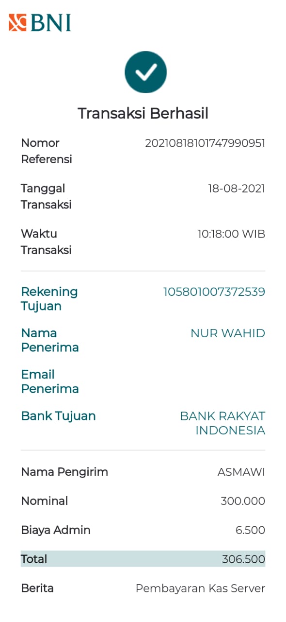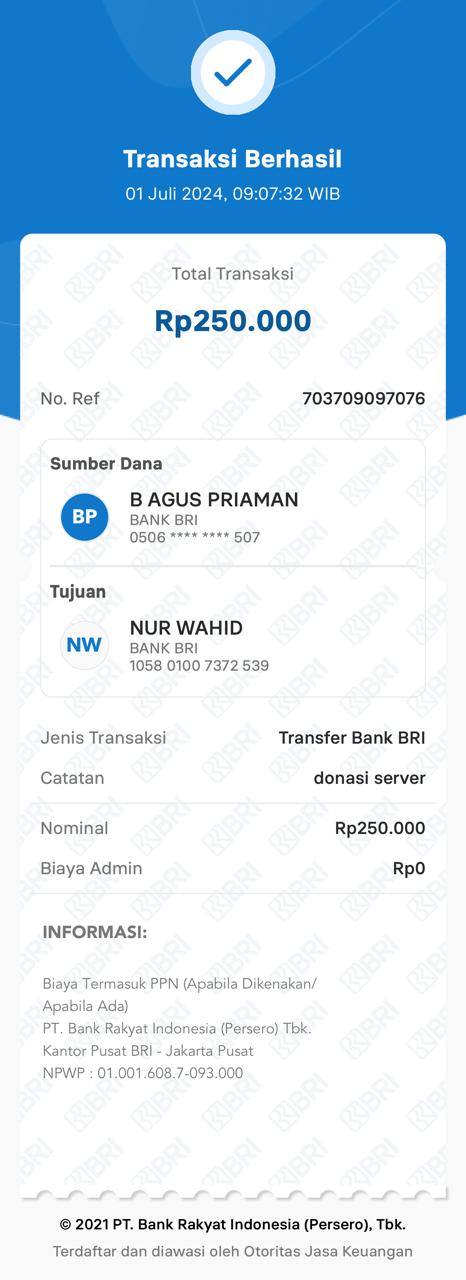 | 459 | 08-01-2021 | Rp 10.000,- | - | Donasi server dari JZ04NUR HASAN | Ada | - |