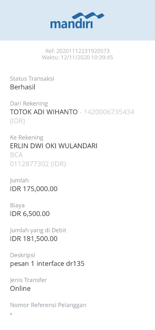 | 499 | 12-11-2020 | Rp 175.000,- | - | Pembayaran 1 interface DR-135, JZ02HFP, YUSTINUS WARUWU | Ada | - |