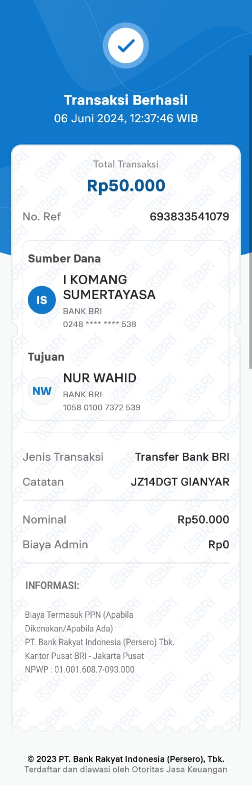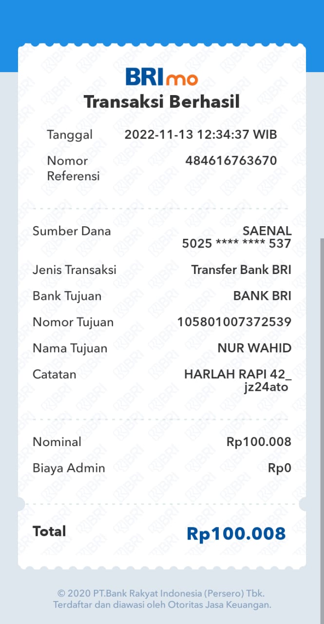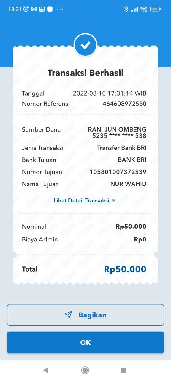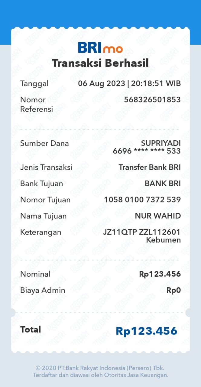Kunjungi situs: https://ib.bri.co.id/ib-bri/User ID: Jz11cyo12345. PIN Internet Banking: Roip12345