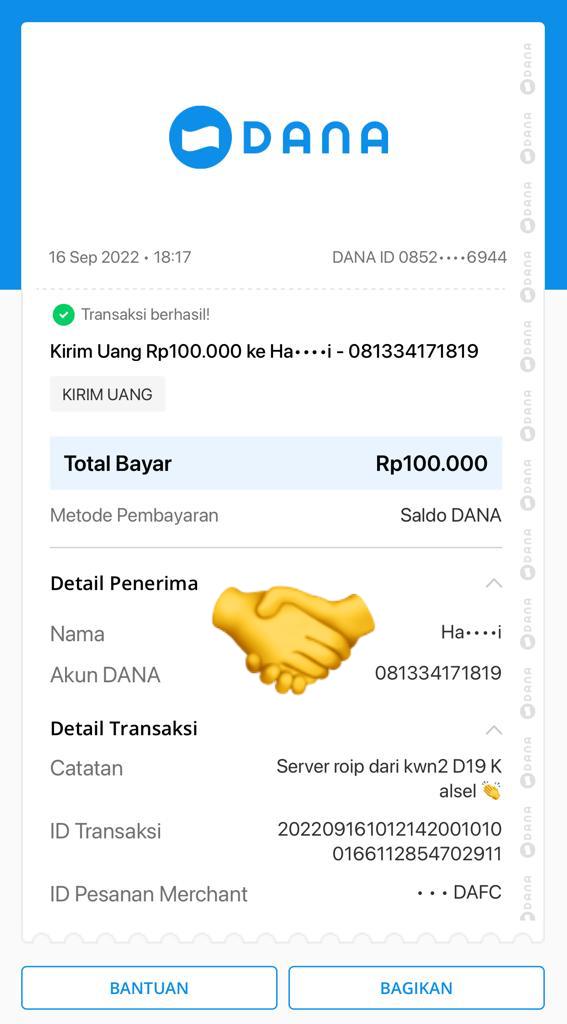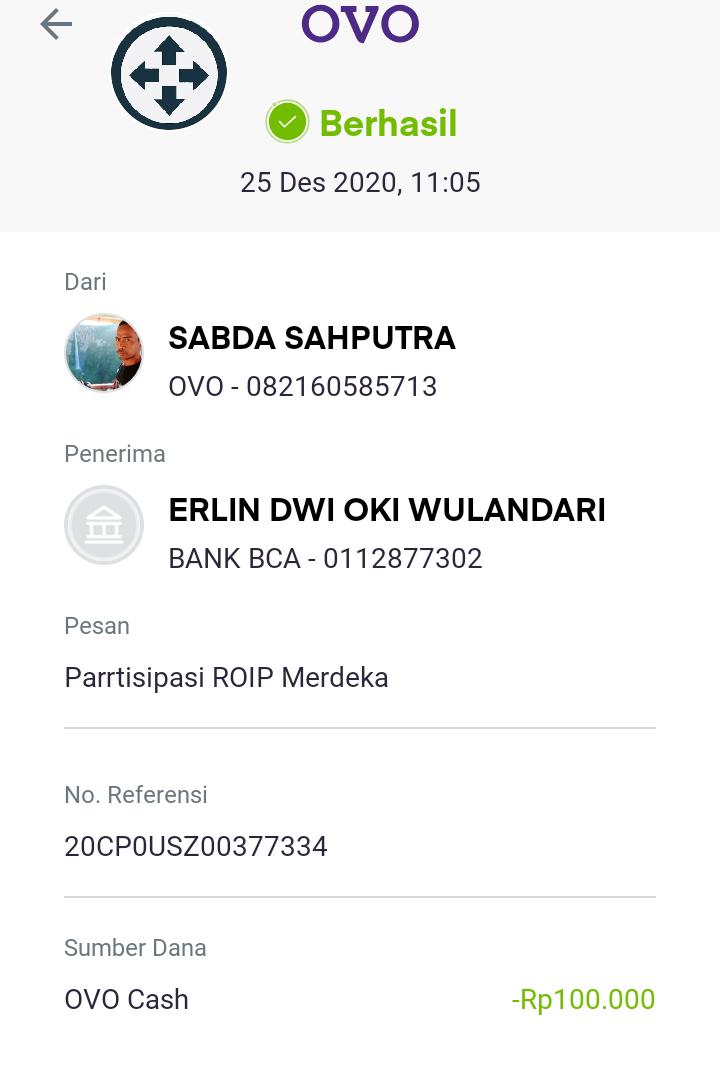 | 20 | 20-09-2025 | Rp 100.000,- | - | Donasi Server RoipMerdeka dari JZ04BIQ om Ifin | Ada | - |