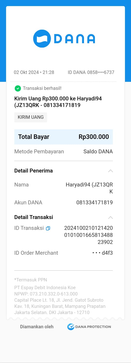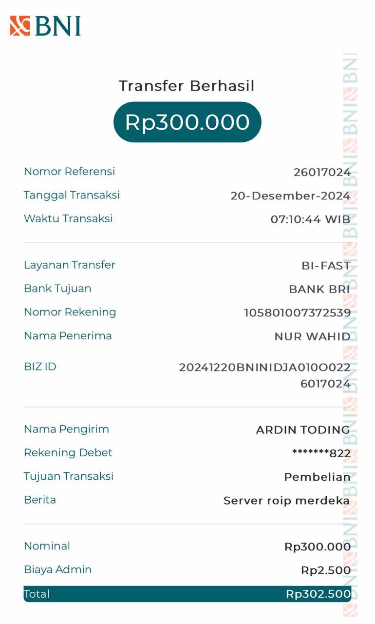 | 13 | 02-11-2025 | Rp 300.000,- | - | Donasi Server Roip Merdeka dari JZ18ACN | Ada | - |