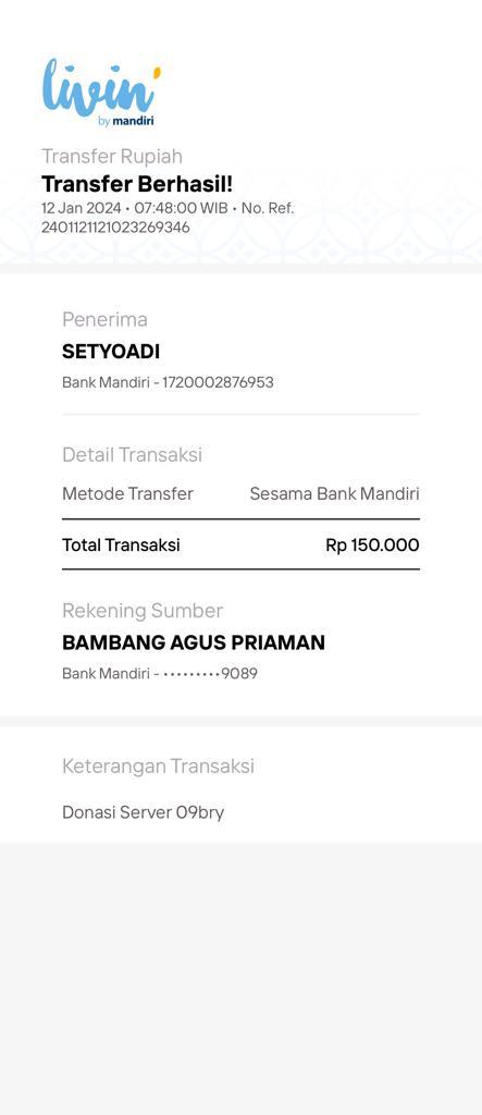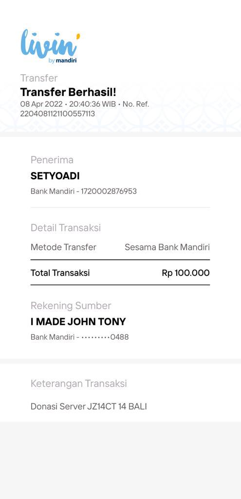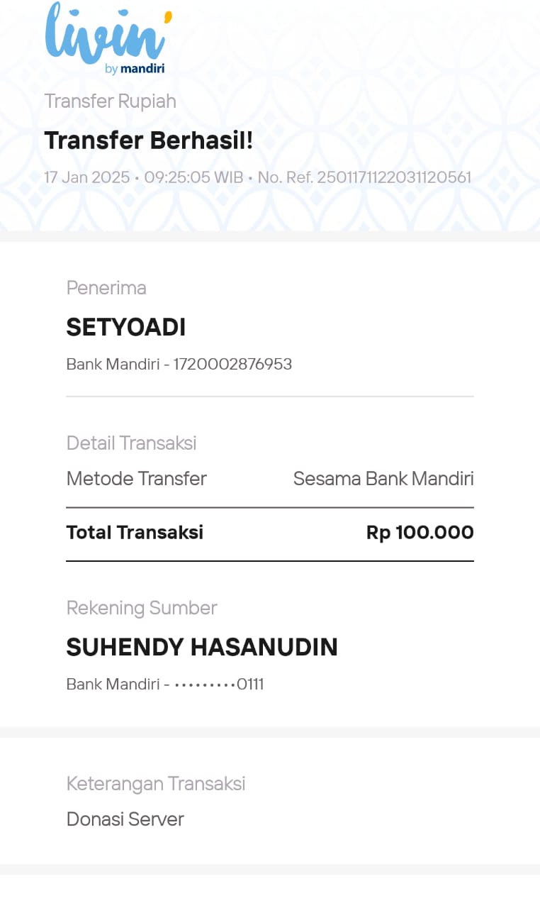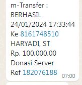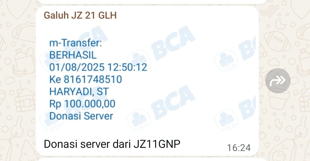| 28 | 01-08-2025 | Rp 100.000,- | - | Donasi Server dari JZ11GNP | Ada | - |