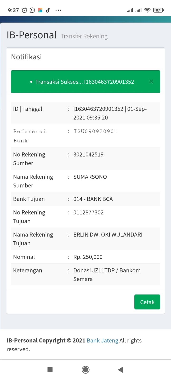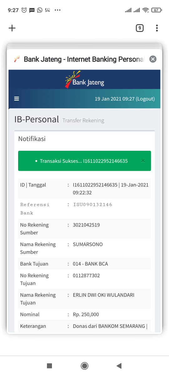 | 458 | 19-01-2021 | Rp 250.000,- | - | Donasi untuk Roip Merdeka dari JZ11TDP om Sumarsono | Ada | - |