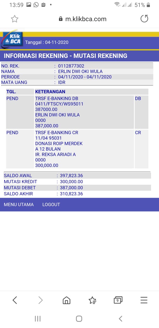 | 503 | 04-11-2020 | Rp 10.823,- | - | Saldo Awal rekening Roip Merdeka | - | - |