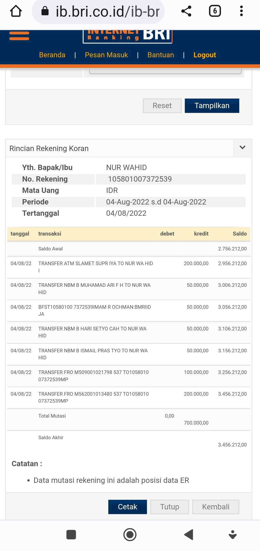 Jangan lupa klik Logout untuk keluar.