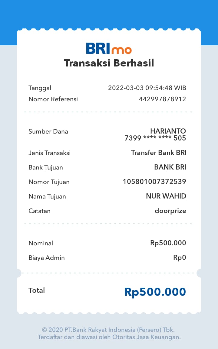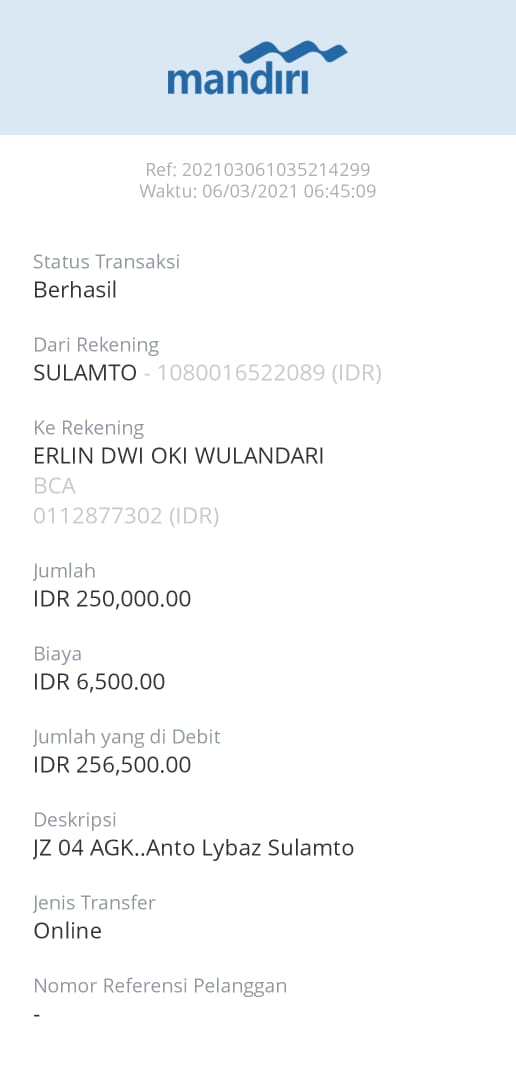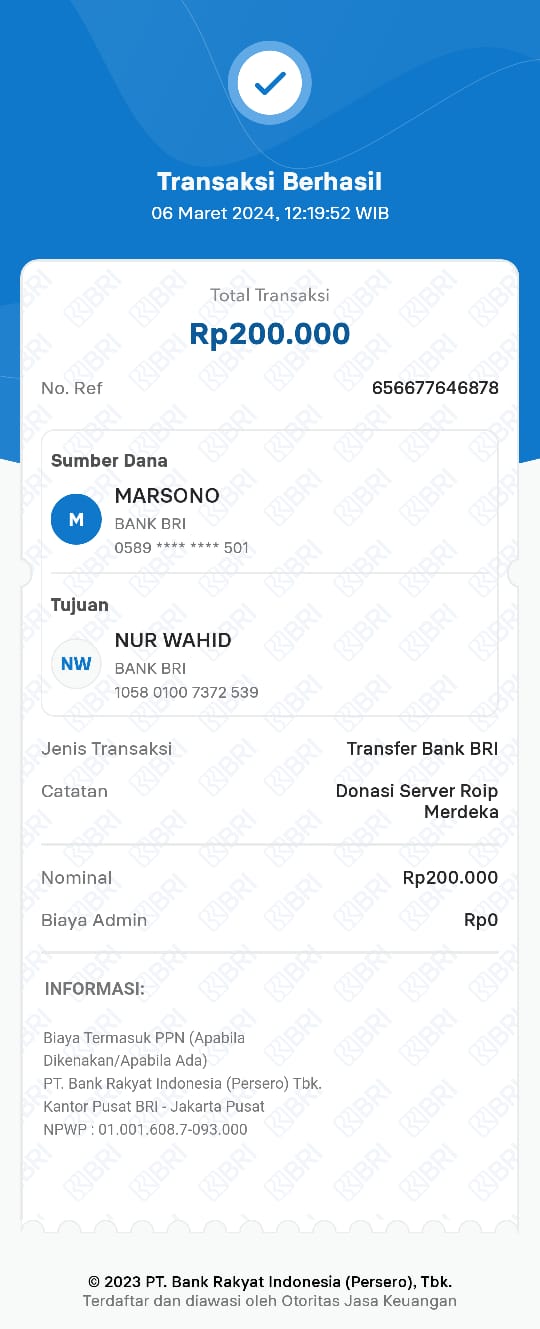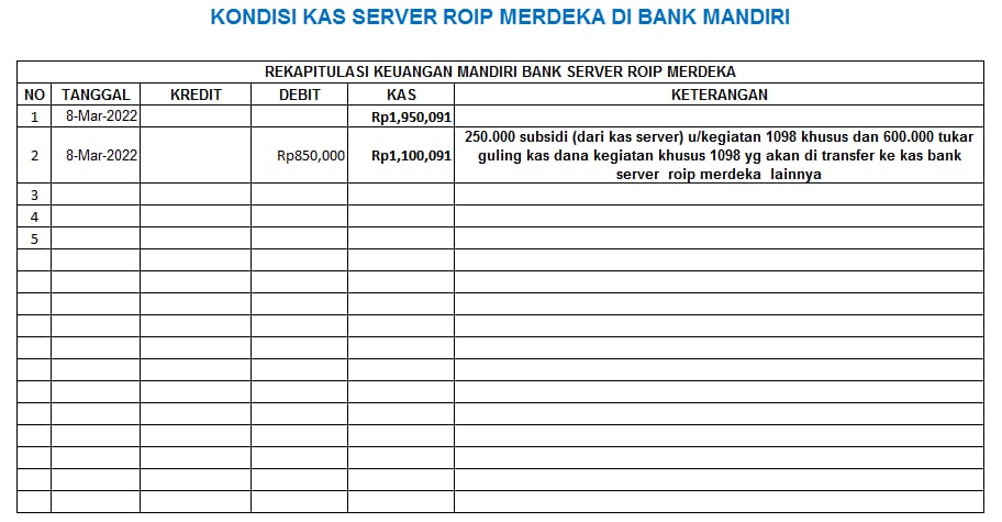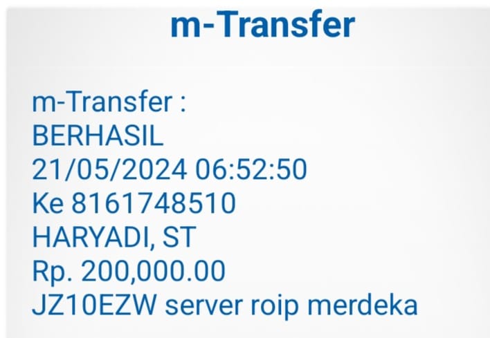 | 455 | 06-03-2021 | Rp 250.000,- | - | Donasi untuk Server ROIP Merdeka dari JZ04AGK, Om Sulamto (Anto Lybaz) | Ada | - |