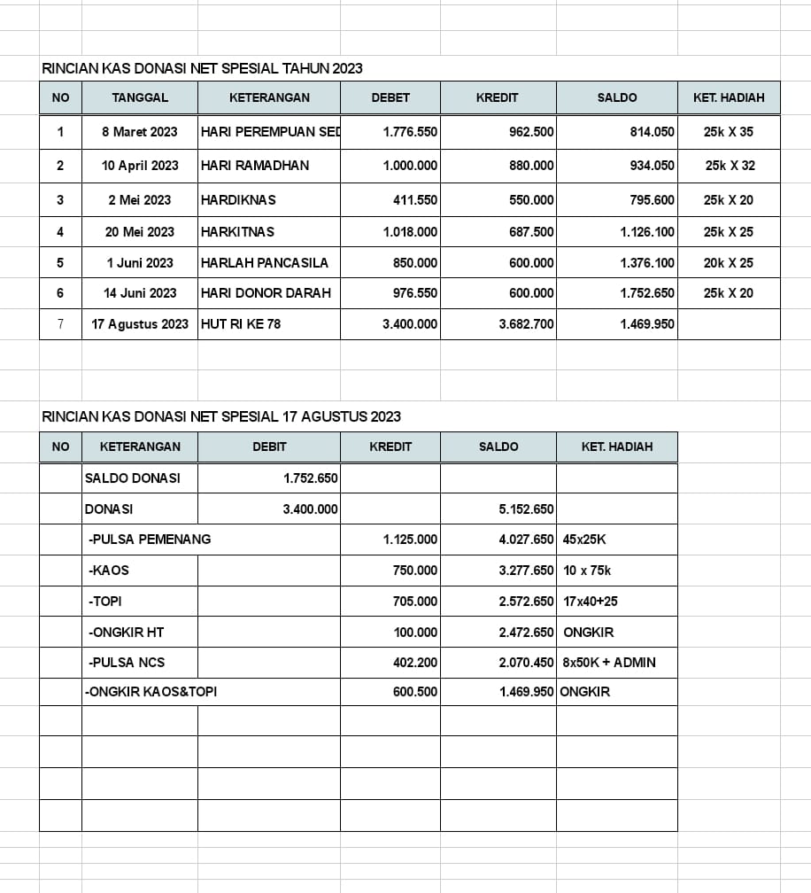 | 7 | 08-11-2025 | Rp 200.000,- | - | Donasi Server Roip Merdeka dan Kegiatan dari JZ30CIC | Ada | - |