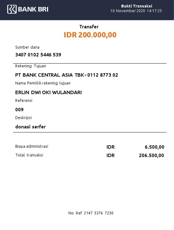 | 511 | 23-10-2020 | Rp 220.000,- | - | Donasi dari JZ13QRK untuk bayar VPS | Ada | - |