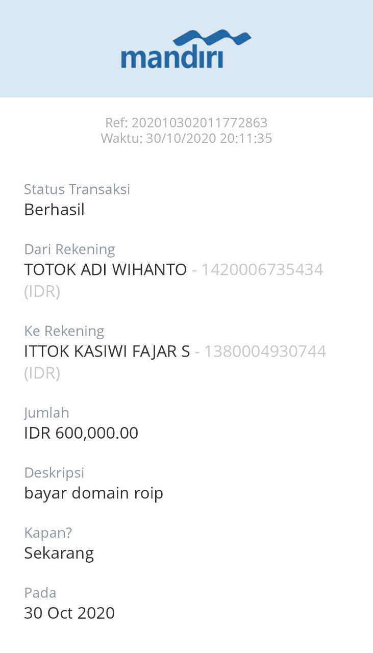 | 507 | 30-10-2020 | - | Rp 600.000,- | Bayar domain | Ada | - |
