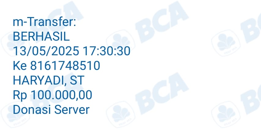 | 81 | 04-06-2025 | Rp 100.000,- | - | Donasi kas server dari JZ11BNG | Ada | - |