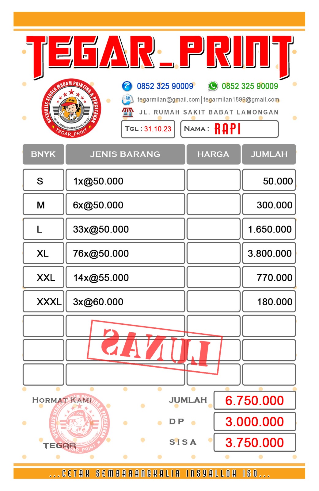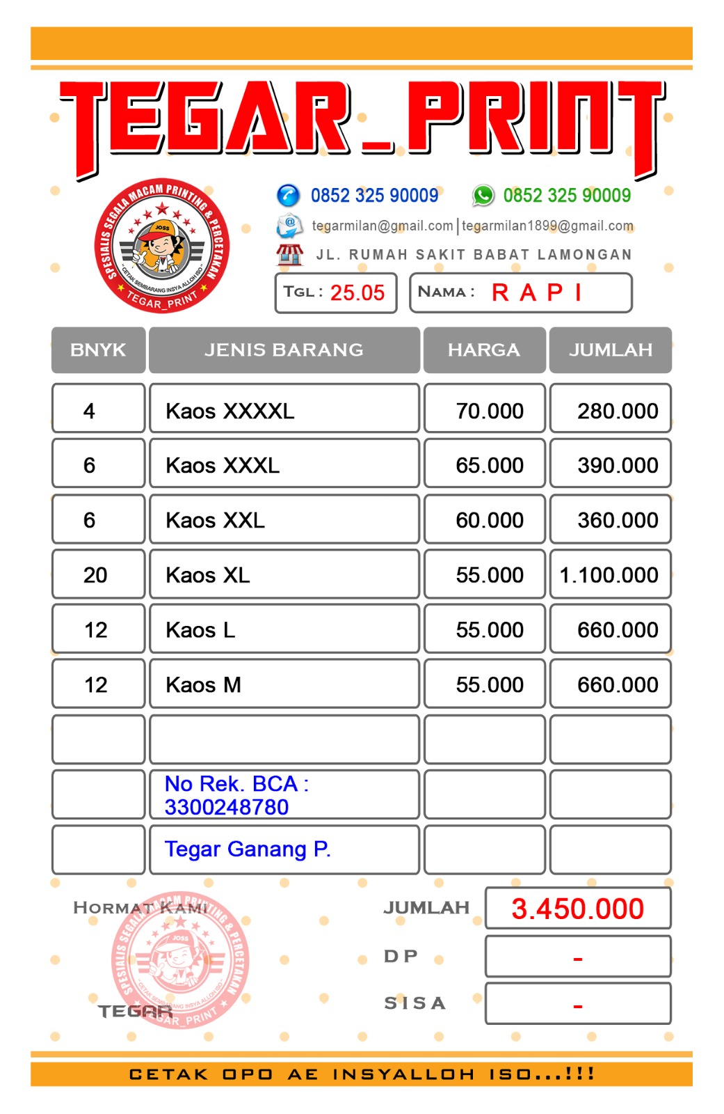 | 37 | 30-04-2025 | - | Rp 1.017.500,- | Jumlah Pengeluaran kegaiatan Bulan April 2025 | - | - |