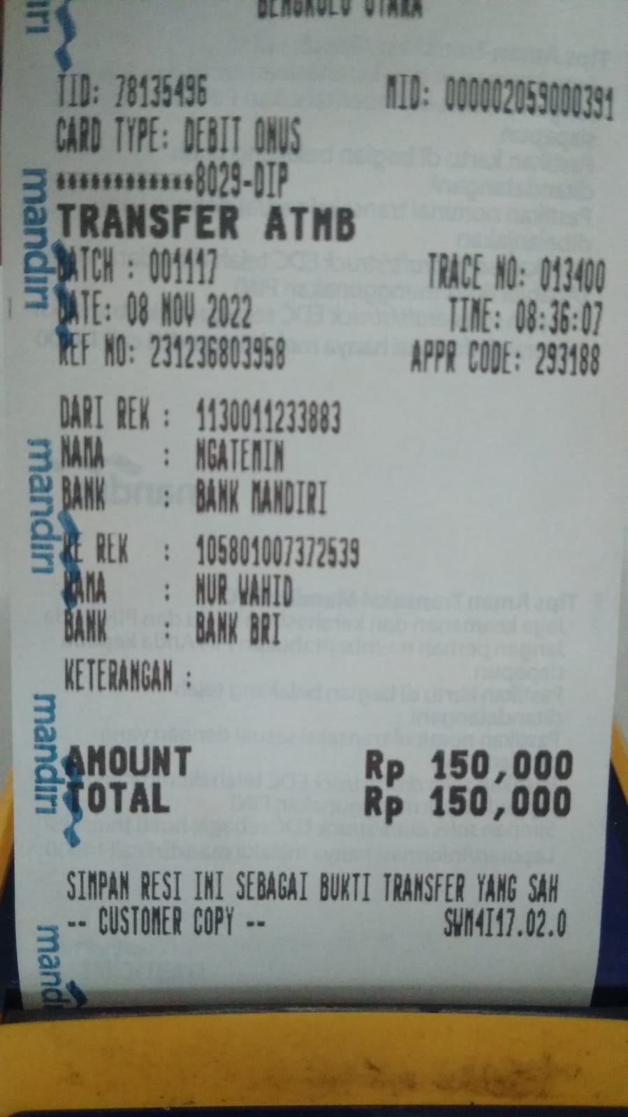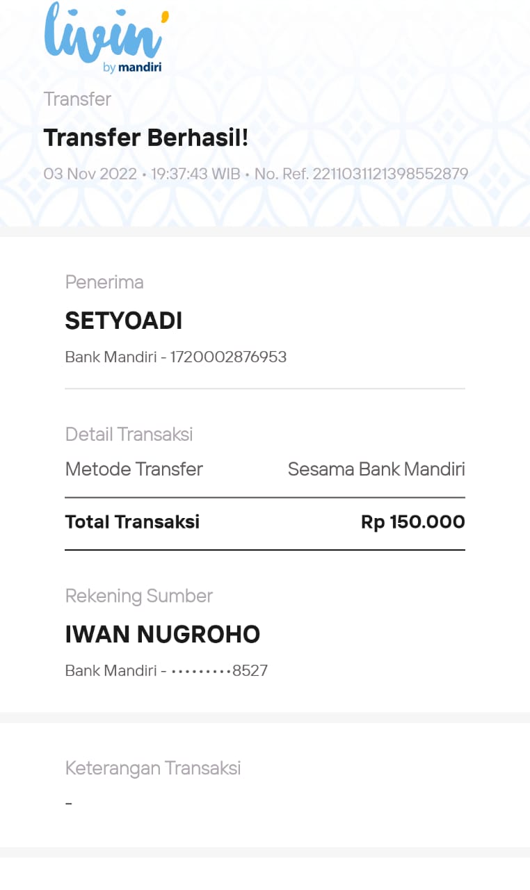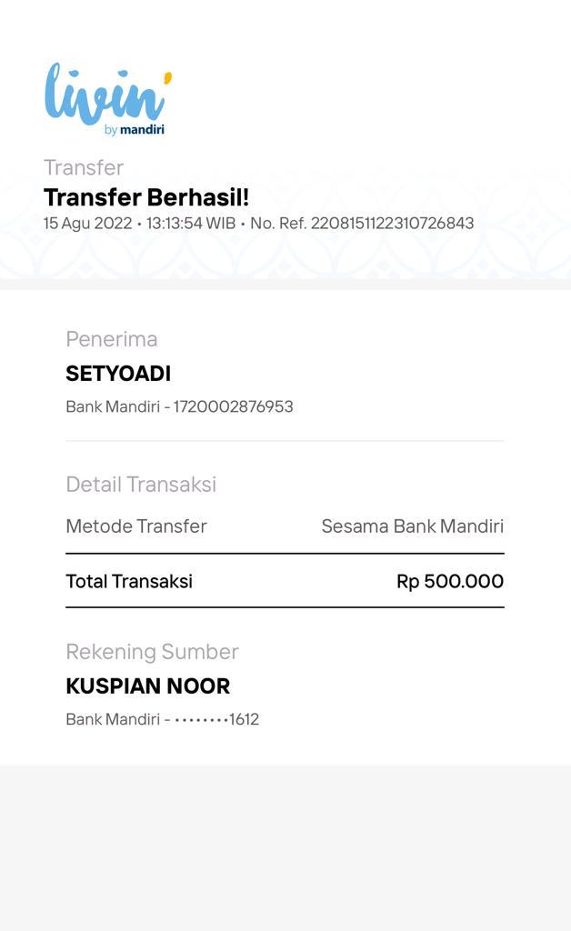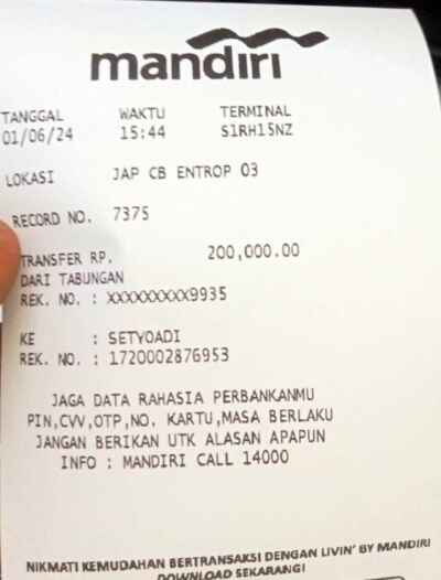 Kunjungi situs: https://ibank.bankmandiri.co.id/retail3/User ID: malang2303. PIN Internet Banking: RoipMerdeka0411