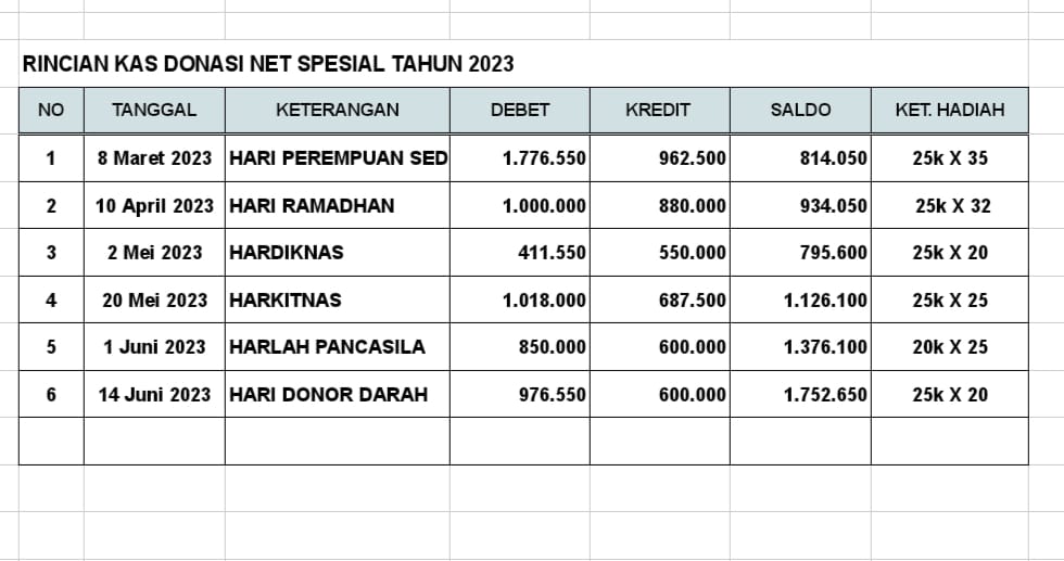 | 34 | 30-06-2025 | Rp 300.000,- | - | Jumlah Donasi Kegiatan Bulan juni 2025 | - | - |