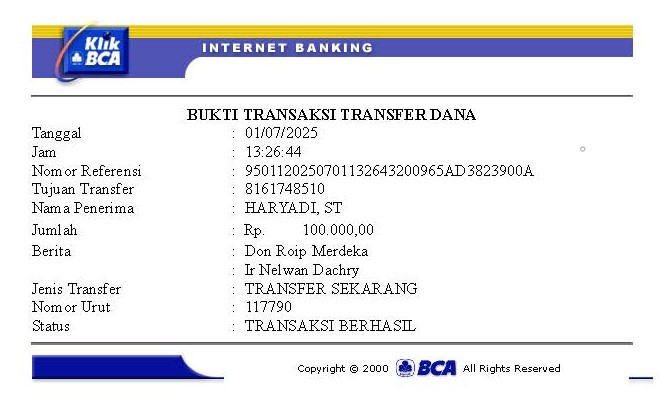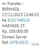 | 2 | 18-11-2025 | Rp 100.000,- | - | Donasi Server RoIPMERDEKA dari JZ10JVP | Ada | - |