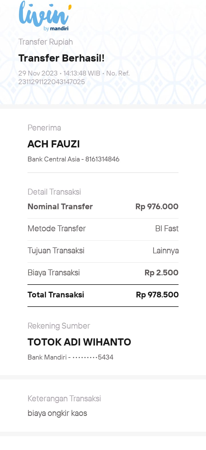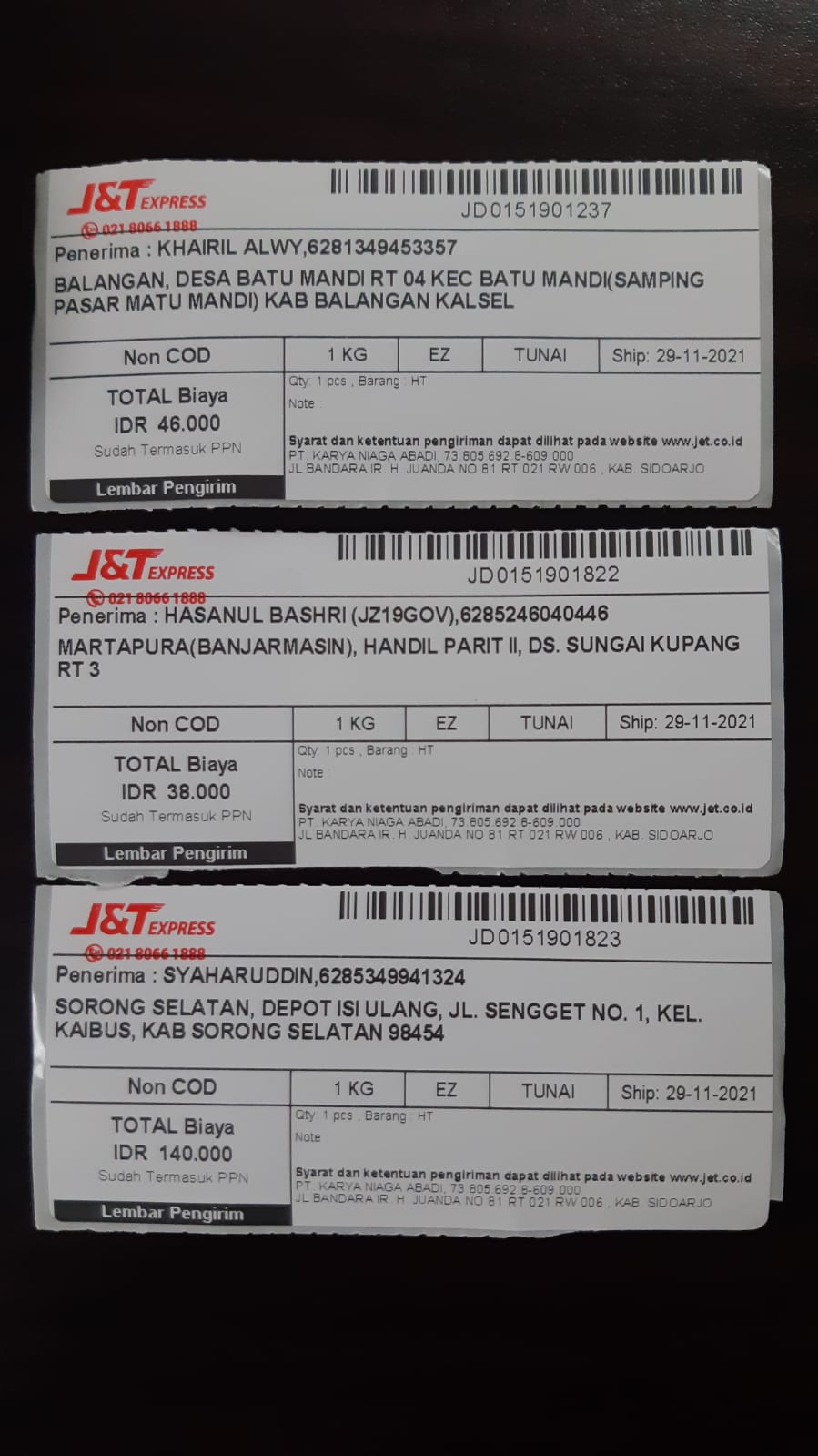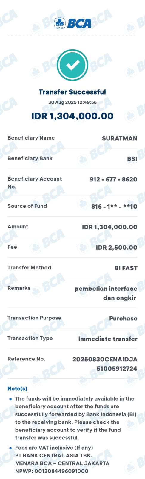 | 23 | 30-08-2025 | - | Rp 1.106.500,- | Pembelian dan Ongkir 5 unit Interface Hadiah Net spesial | Ada | - |