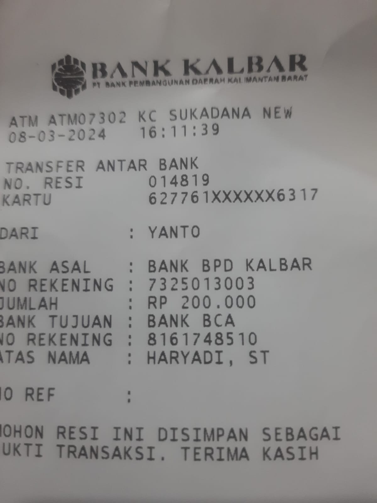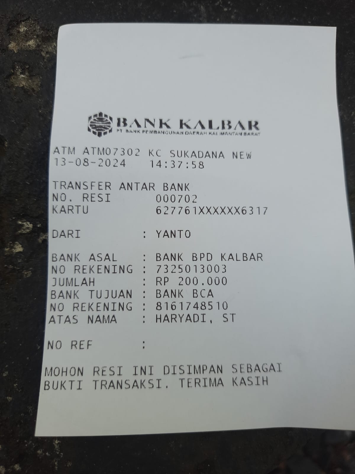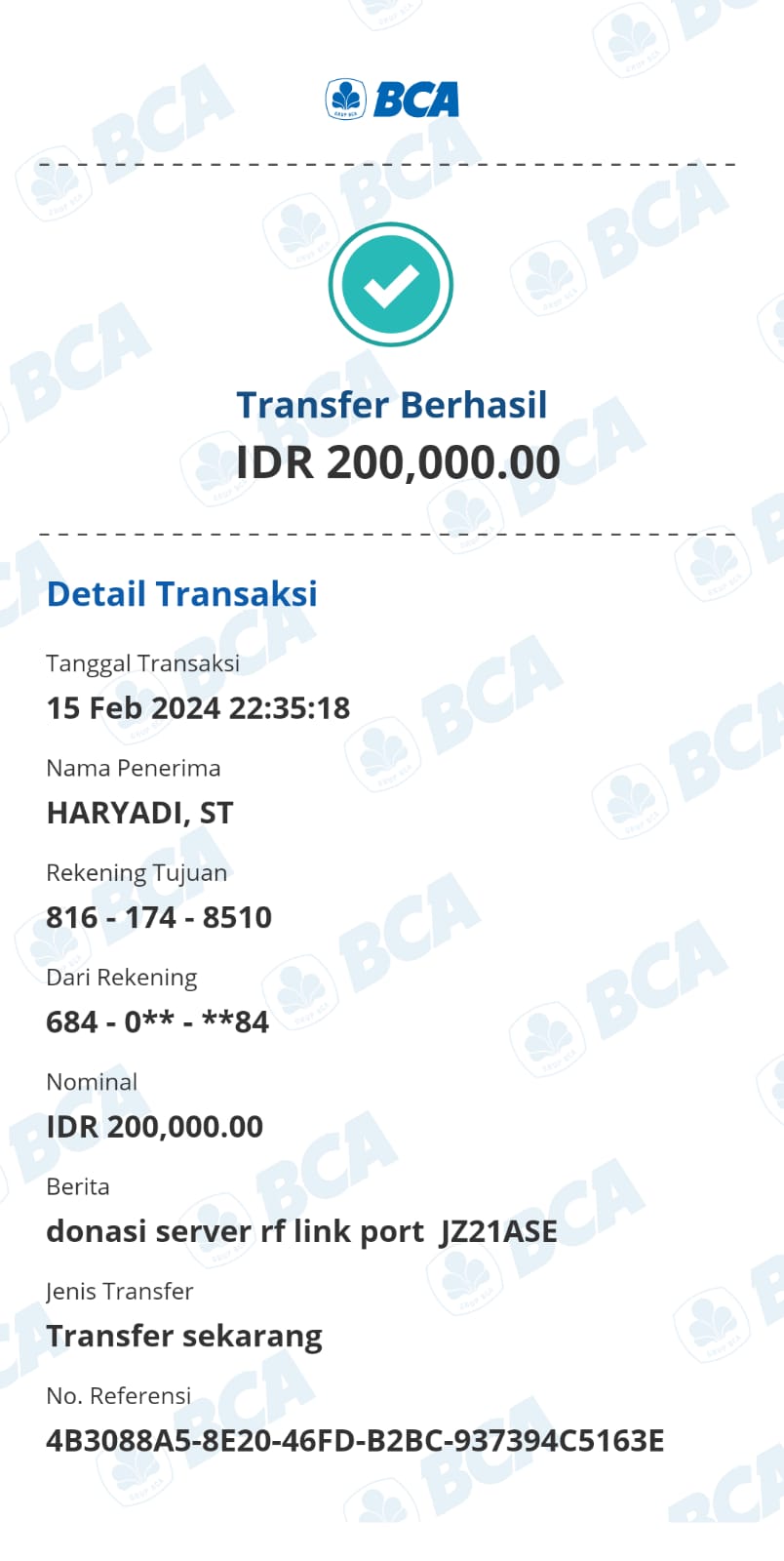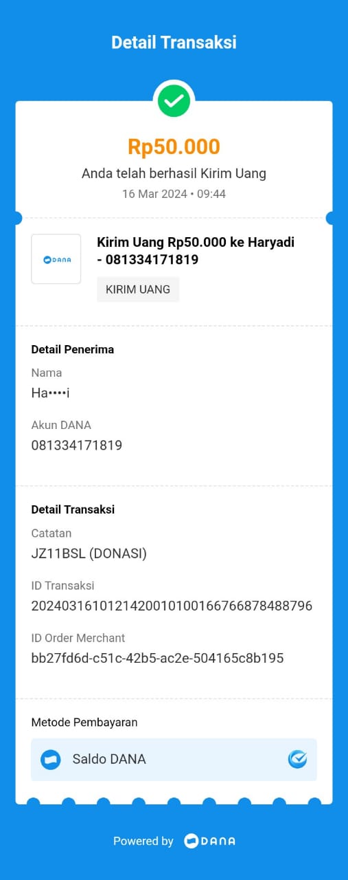 | 510 | 16-08-2020 | Rp 200.000,- | - | Donasi dari JZ13QRK | Ada | - |