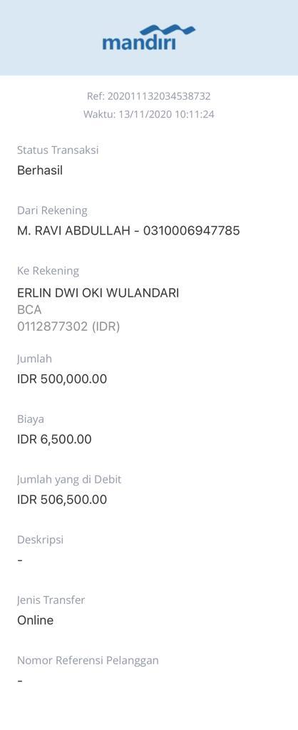 | 496 | 13-11-2020 | Rp 300.000,- | - | Donasi dan Pembelian Interface unuk Room Indonesia dari JZ06BBS | Ada | - |