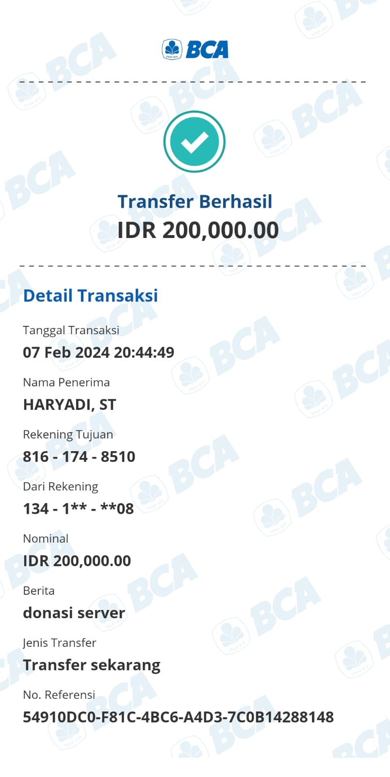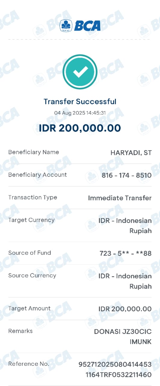 | 27 | 04-08-2025 | Rp 200.000,- | - | Donasi Server dari JZ30CIC | Ada | - |