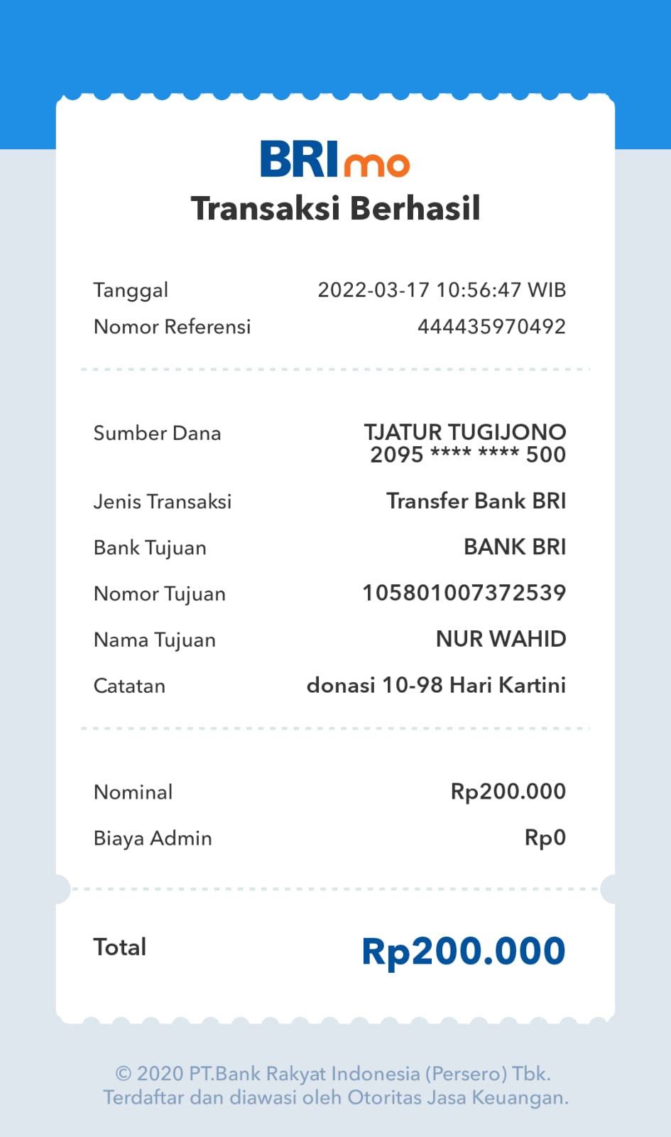 | 477 | 19-12-2020 | Rp 200.000,- | - | Donasi dari JZ04AGK, SULAMTO | Ada | - |