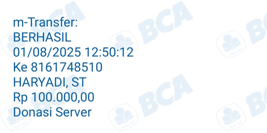 | 29 | 01-08-2025 | Rp 100.000,- | - | Donasi Server dari JZ11BNG | Ada | - |